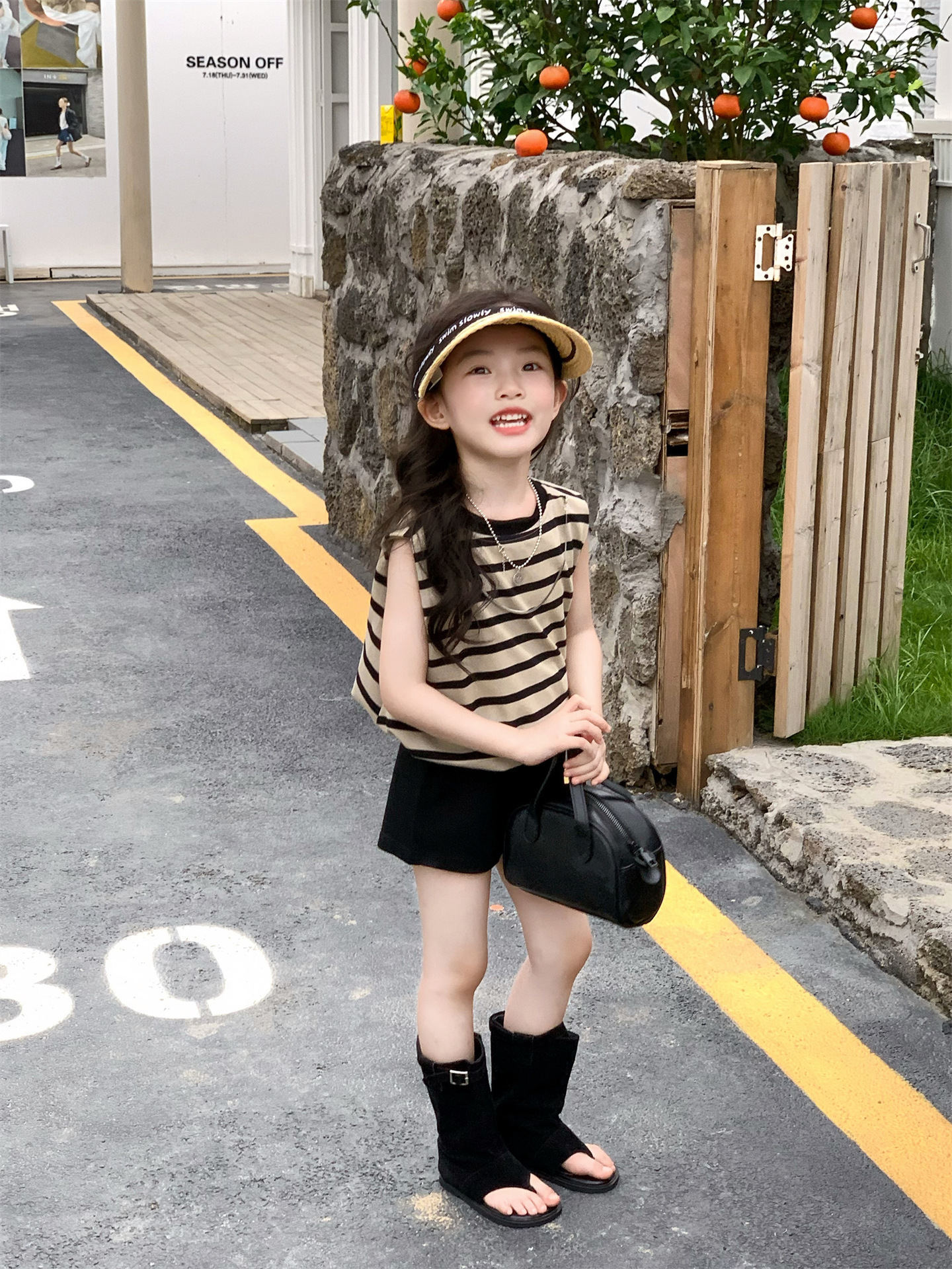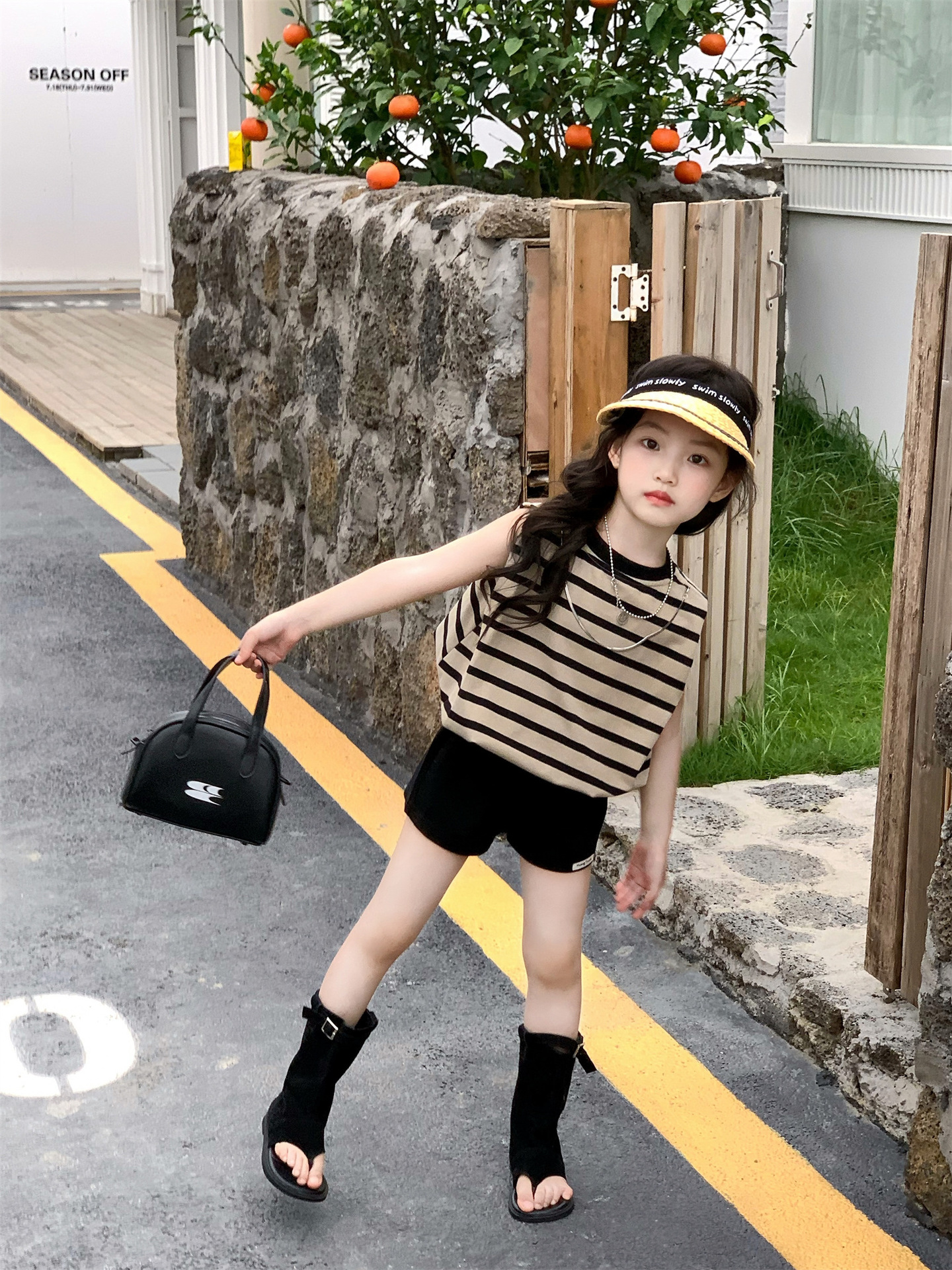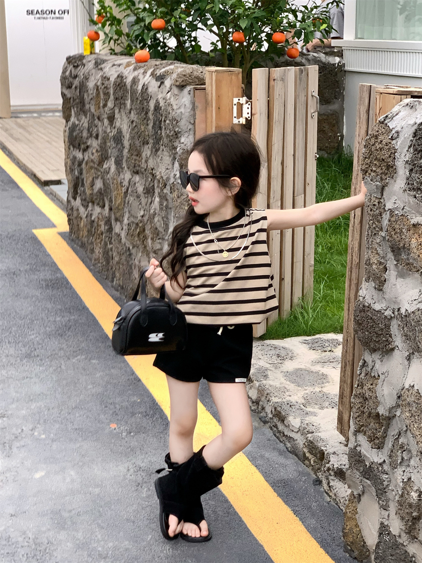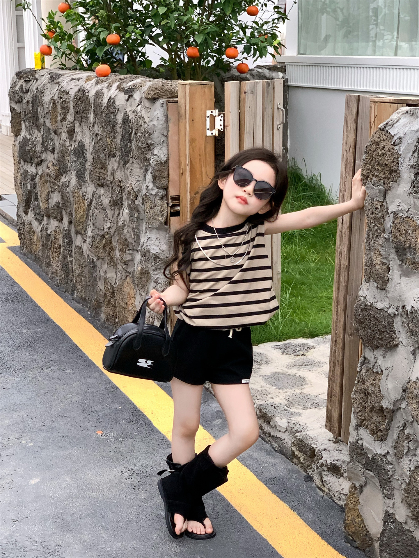 2026년 여름 신상 여아 패셔너블 스트라이프 조끼+슬림핏 반바지 투피스 세트 아기 스타일리쉬 여름옷 세트