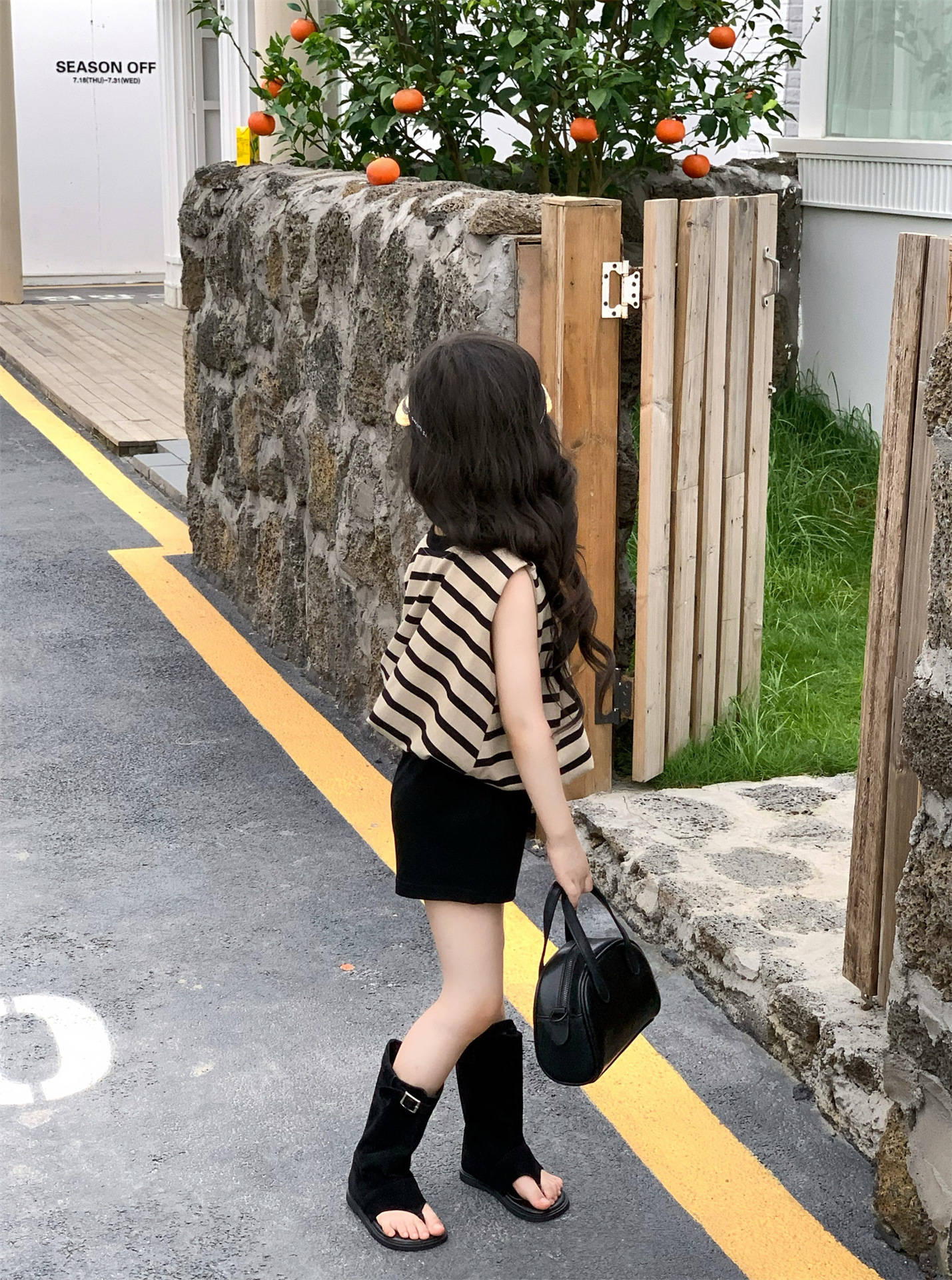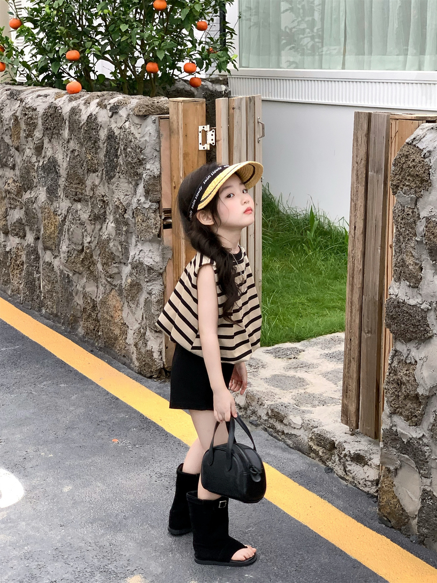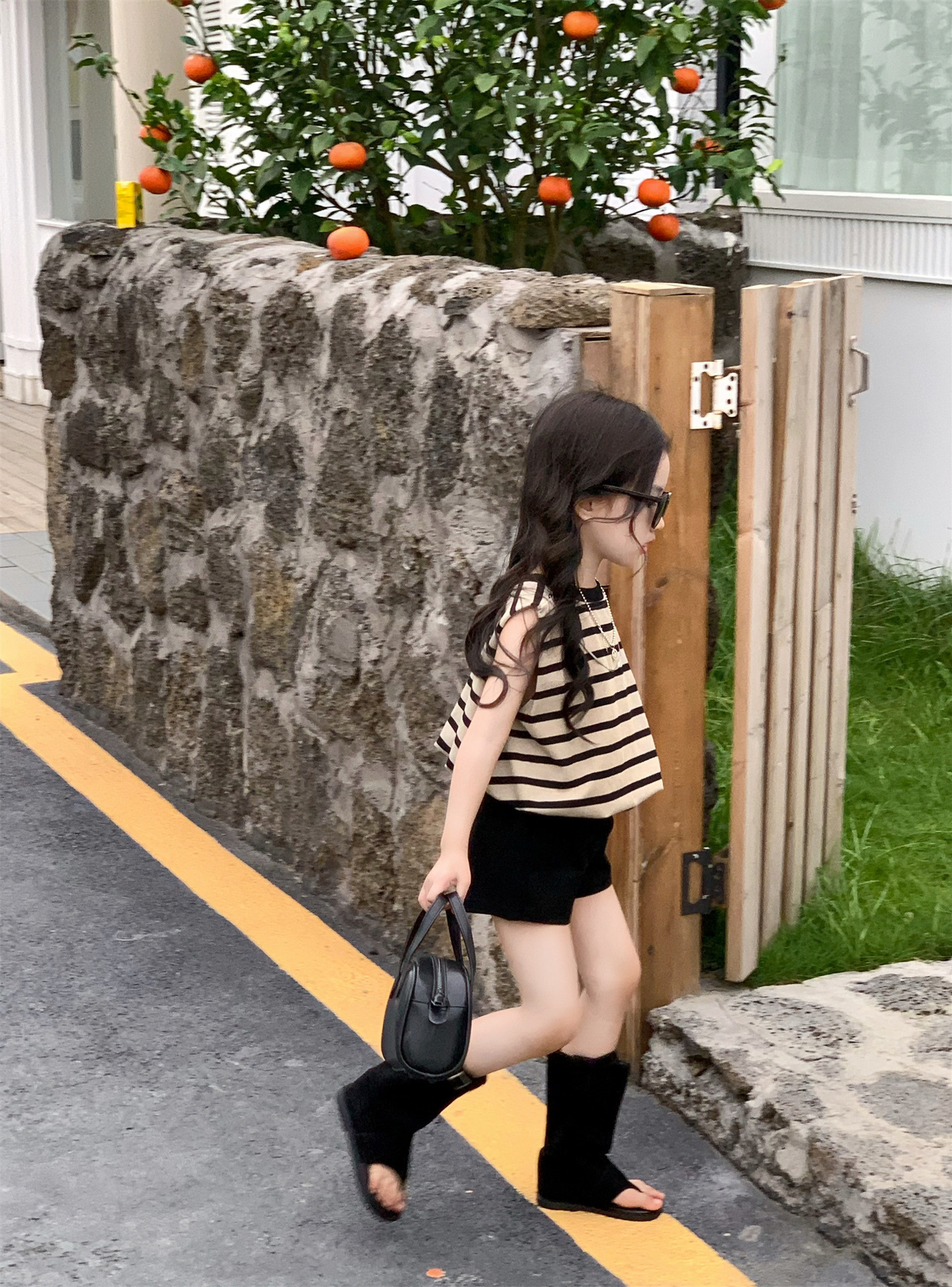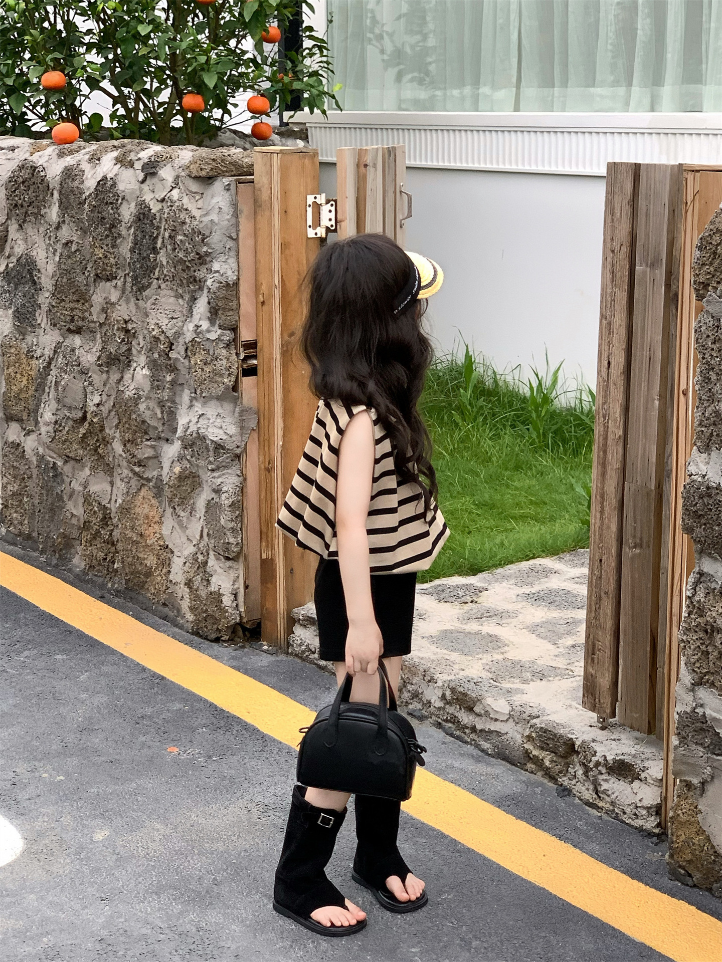 2026년 여름 신상 여아 패셔너블 스트라이프 조끼+슬림핏 반바지 투피스 세트 아기 스타일리쉬 여름옷 세트