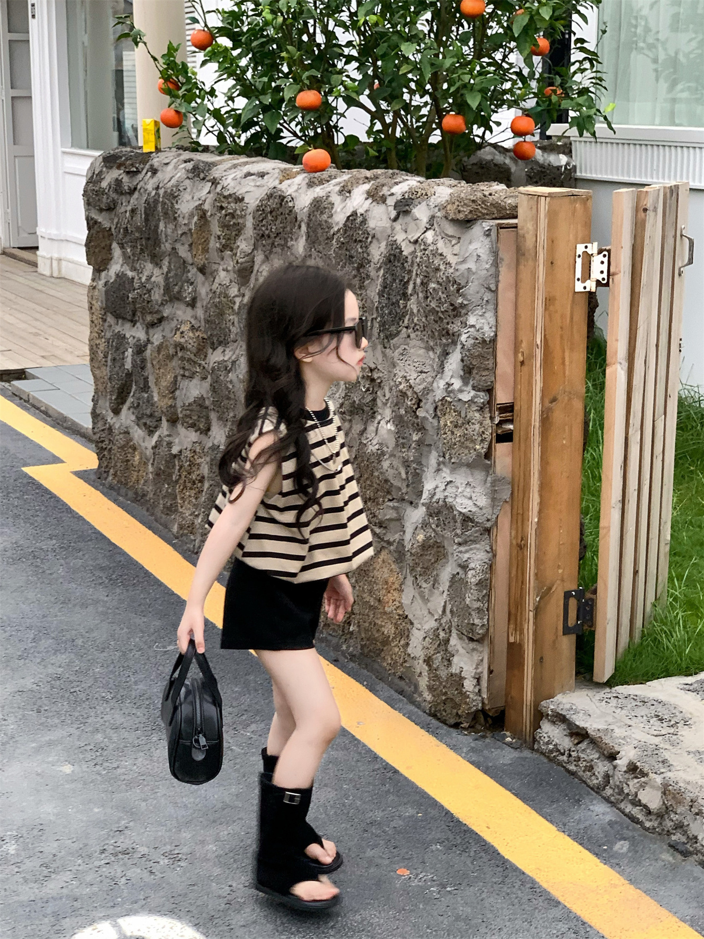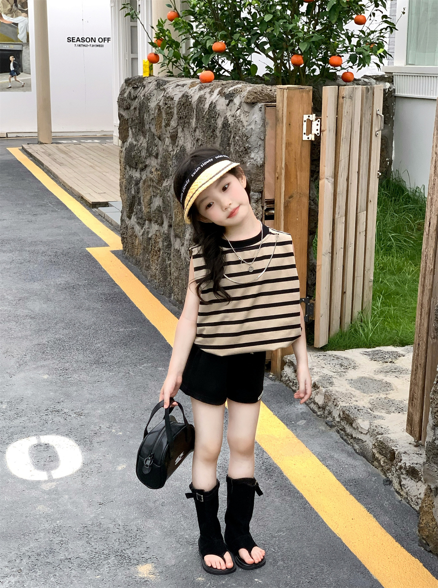 2026년 여름 신상 여아 패셔너블 스트라이프 조끼+슬림핏 반바지 투피스 세트 아기 스타일리쉬 여름옷 세트스토어 가기