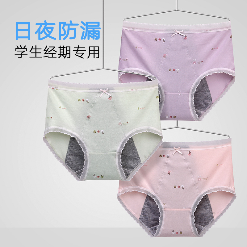 만화 소녀의 월경 기간 속옷 12 세 누수 방지 어린이 아줌마 바지 안전 바지 통기성 항균 월경 바지 중간 허리스토어 가기