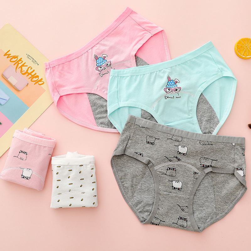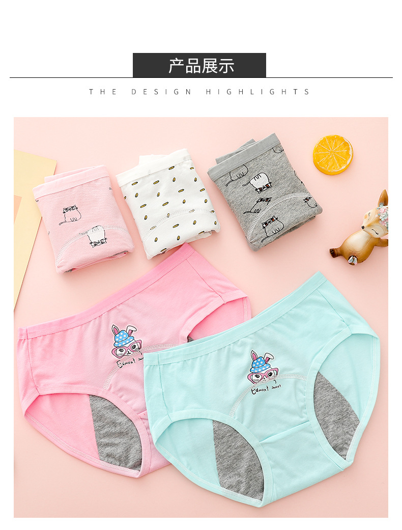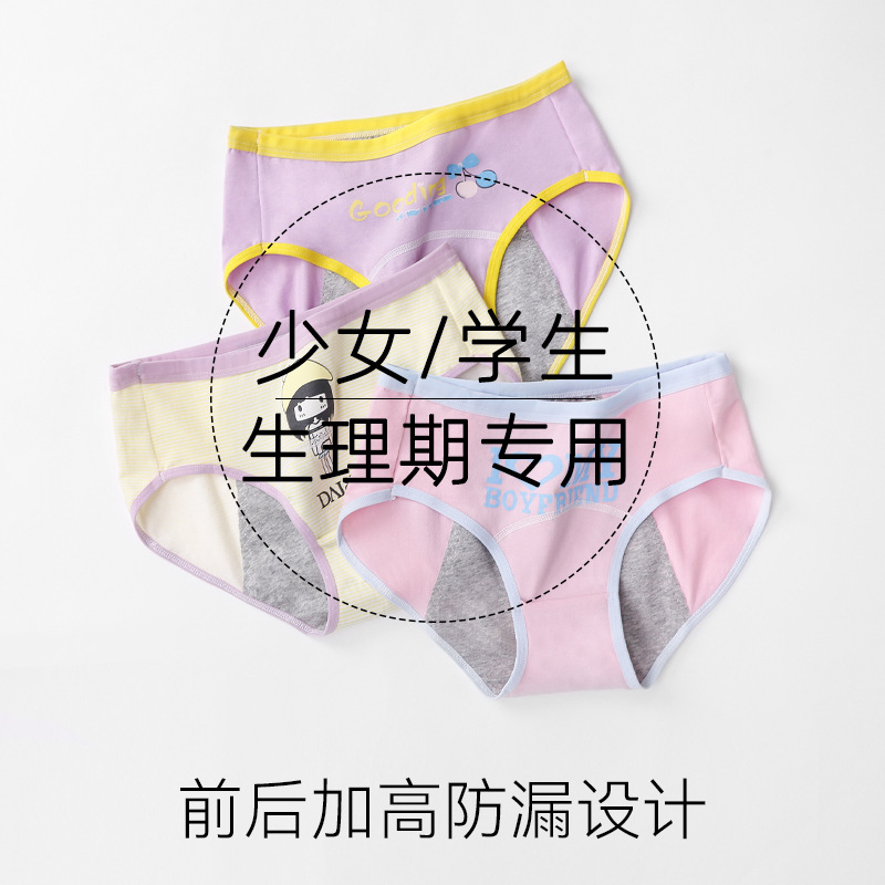 만화 소녀의 월경 기간 속옷 12 세 누수 방지 어린이 아줌마 바지 안전 바지 통기성 항균 월경 바지 중간 허리
