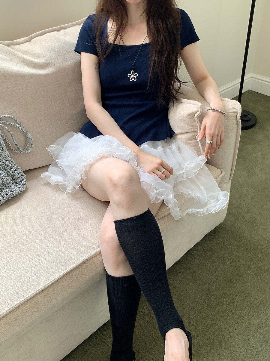 허리끈으로 조절 가능한 슬림핏 반팔 니트 여성용 여름 2026 신상 한국 스타일 다용도 허리 노출 티셔츠 탑스토어 가기