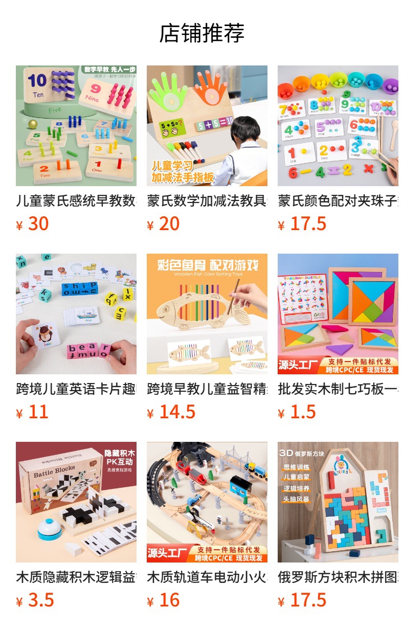 我们是专业生产销售木制玩具的厂家,工厂面积8000多平方,专业设备90余台,员工100多人,年生产量500万套+,产品拥有各种专利证书和跨境资质,我们提供各种产品来图来样定制和贴牌加工服务以及分销代发合作,期待您联系旺旺与我洽谈。