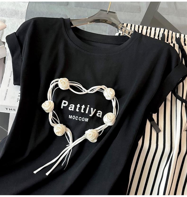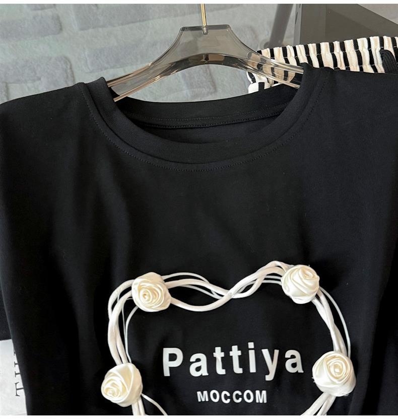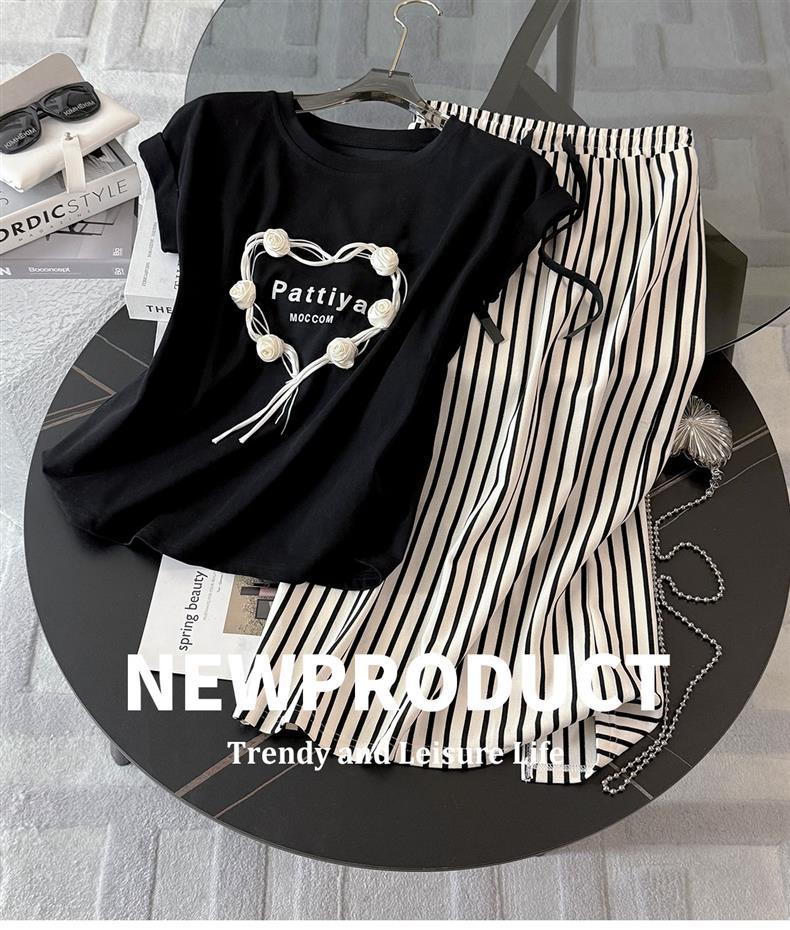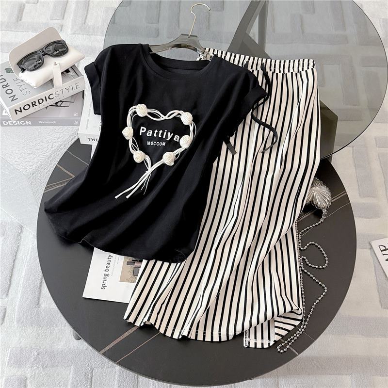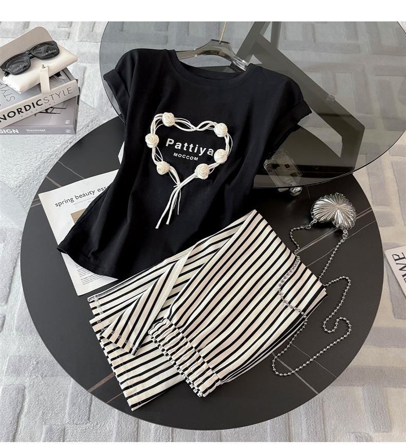 심천 난유 여름 슬리밍 작은 플라잉 슬리브 티셔츠 스트라이프 스커트 투피스 세트 여성용 정장 스커트 세트스토어 가기