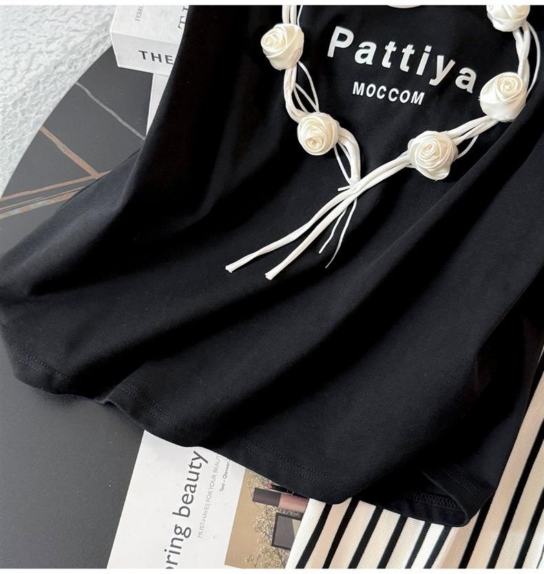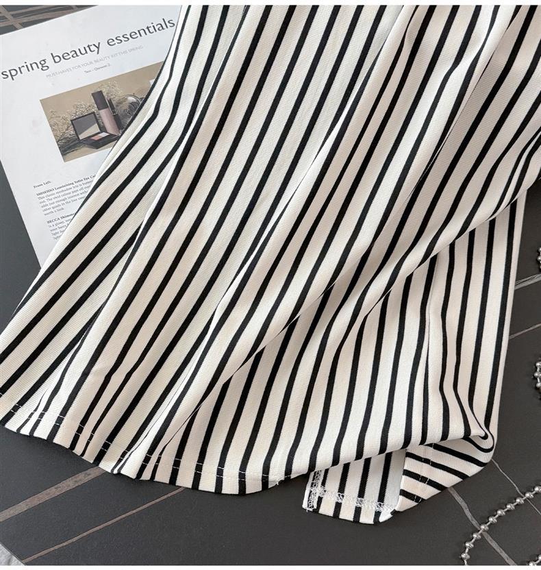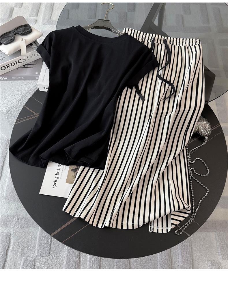 심천 난유 여름 슬리밍 작은 플라잉 슬리브 티셔츠 스트라이프 스커트 투피스 세트 여성용 정장 스커트 세트