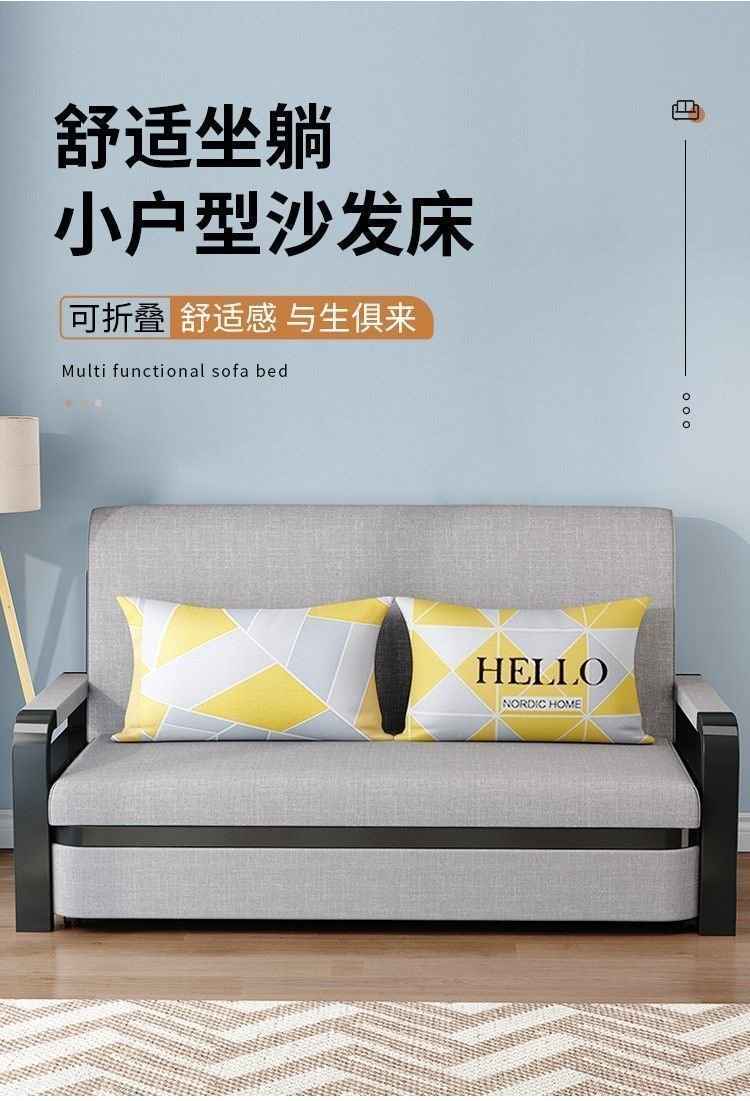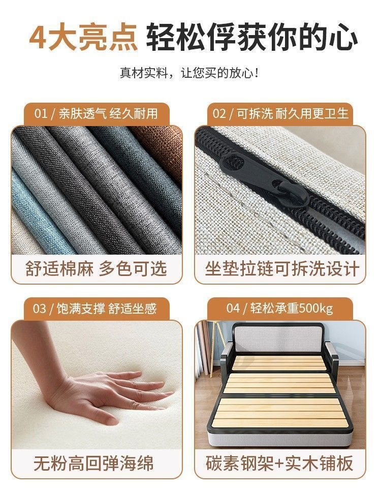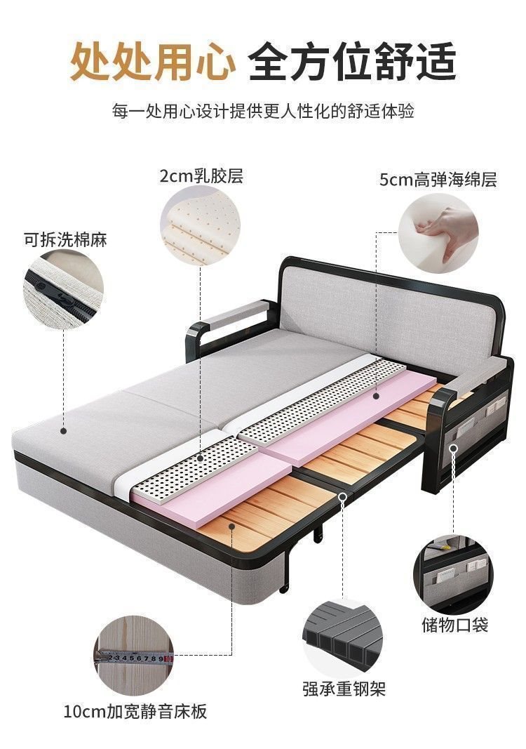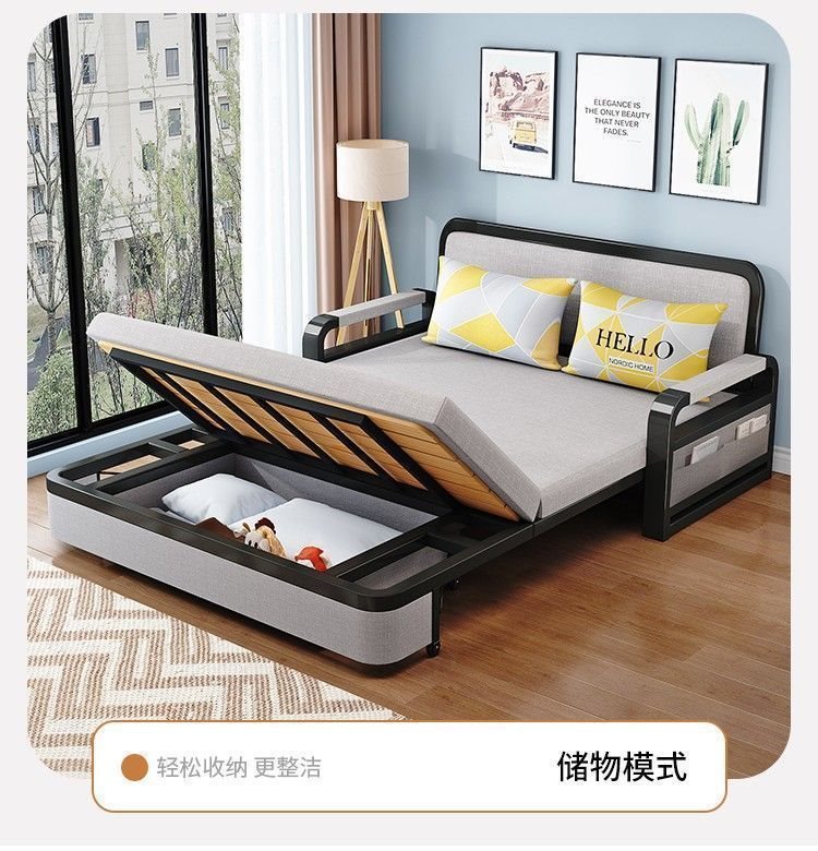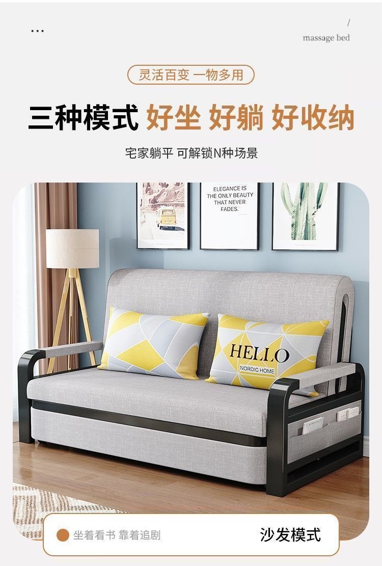 소파 베드 접이식 소파 베드 일체형 이중 목적 철제 접이식 소파 베드 텔레스코픽 수납 다기능 인터넷 연예인 모델스토어 가기