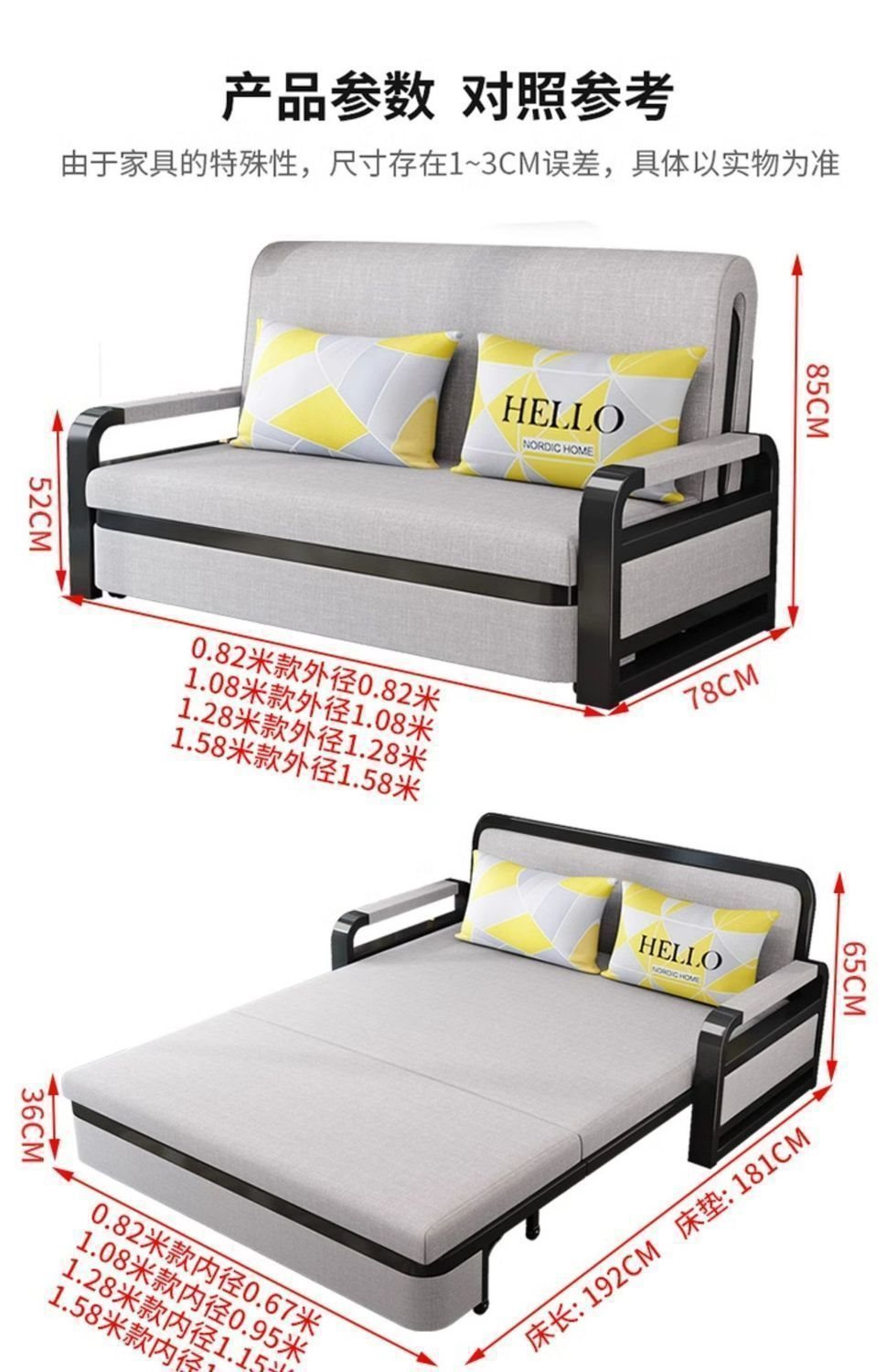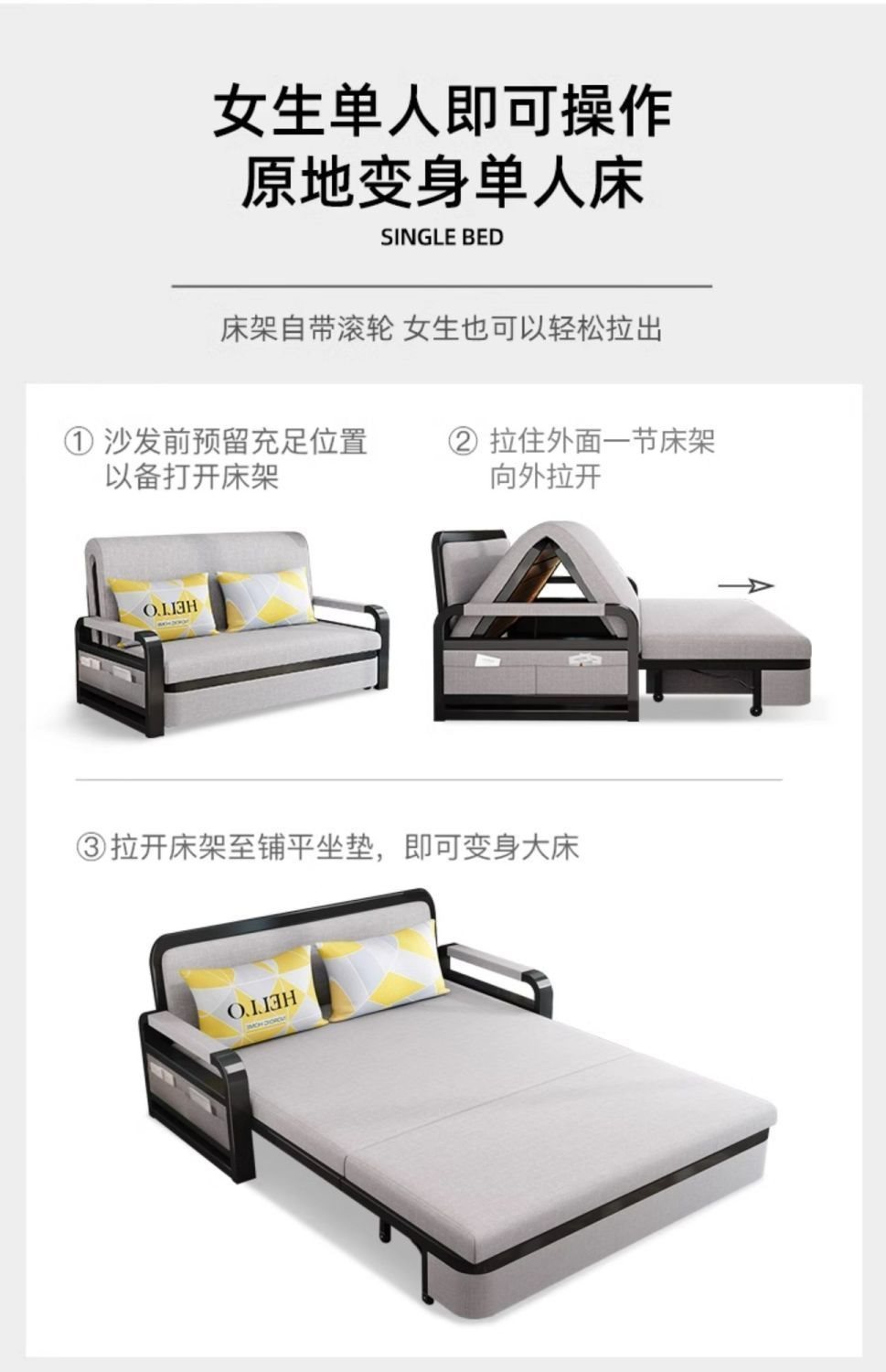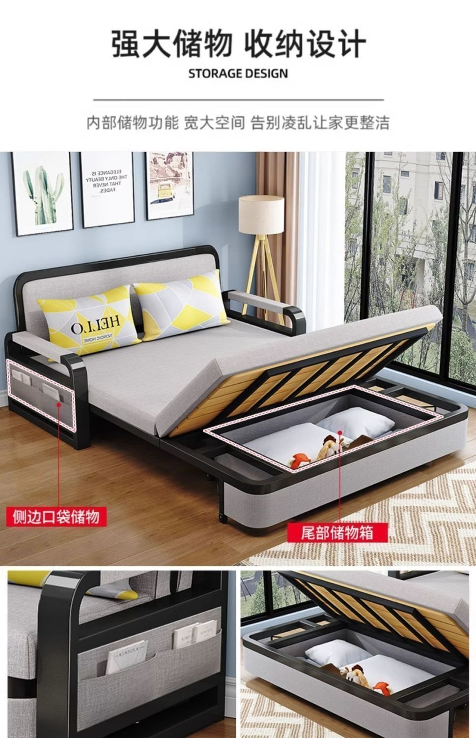 소파 베드 접이식 소파 베드 일체형 이중 목적 철제 접이식 소파 베드 텔레스코픽 수납 다기능 인터넷 연예인 모델스토어 가기