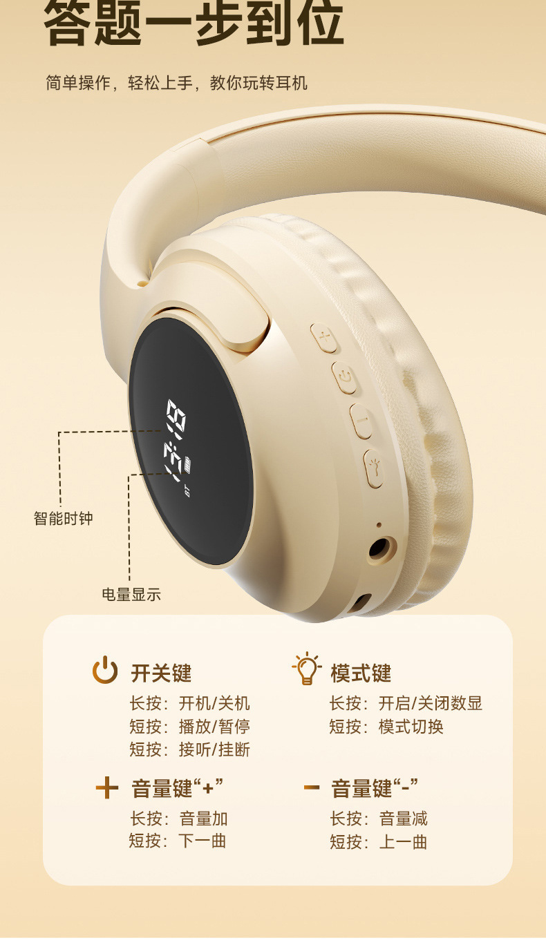 국경을 넘는 SMY-34 FM 디지털 디스플레이 화면 블루투스 이어폰, 매우 긴 배터리 수명, 카드 삽입 및 유선 연결이 가능한 3가지 방식의 블루투스 5.3스토어 가기