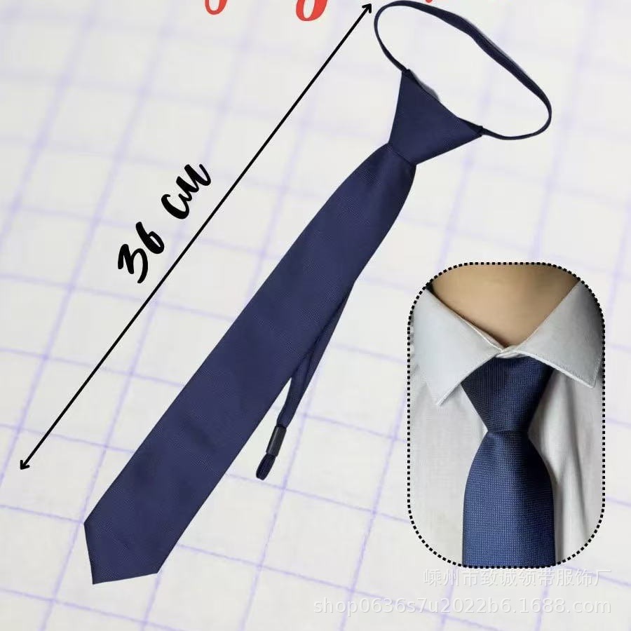 단색 5cm 좁은 체크무늬 스냅버튼 없는 넥타이 학생복 지퍼형 블랙 컬리지 스타일 다용도 쉽게 당기는 타입