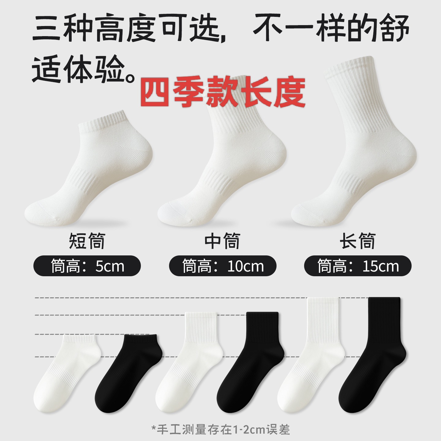 • 7쌍 [Youjia 스타일] 미드 튜브 화이트 3 + 미드 튜브 블랙 4