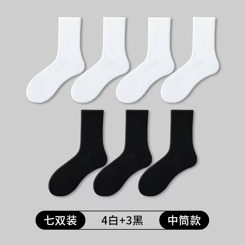 • 7쌍 [Youjia 스타일] 미드 튜브 화이트 4 + 미드 튜브 블랙 3