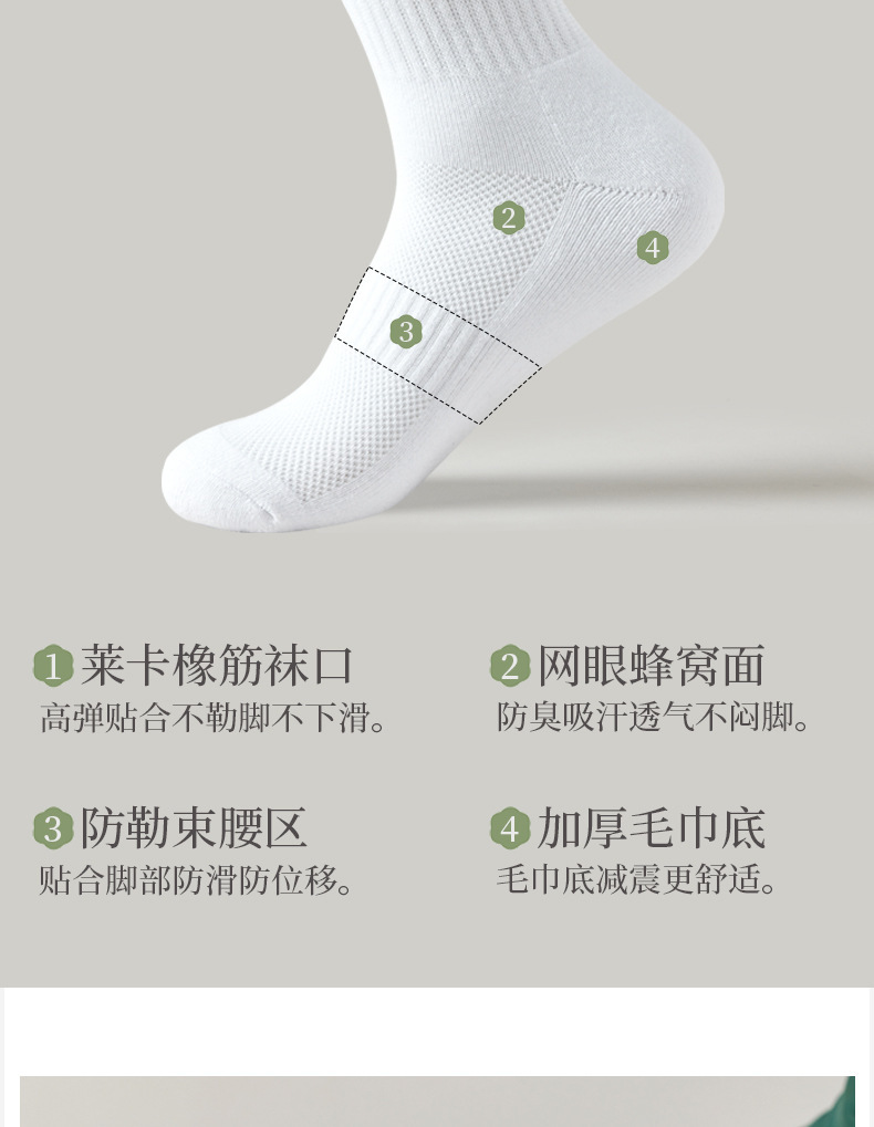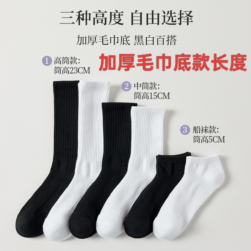 Youjia 양말 남성용 종아리 양말 흰색 순면 두꺼운 수건 바닥 소년 스포츠 양말 탈취제 스타킹스토어 가기