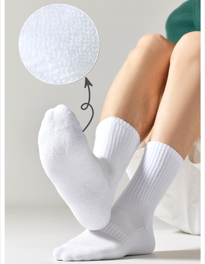 Youjia 양말 남성용 종아리 양말 흰색 순면 두꺼운 수건 바닥 소년 스포츠 양말 탈취제 스타킹
