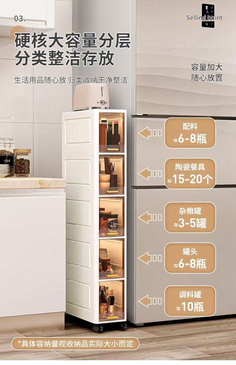국경 간 20cm 플립 탑 수납 캐비닛 좁은 틈새 욕실 정리 캐비닛 주방 다기능 잔해물 보관 상자