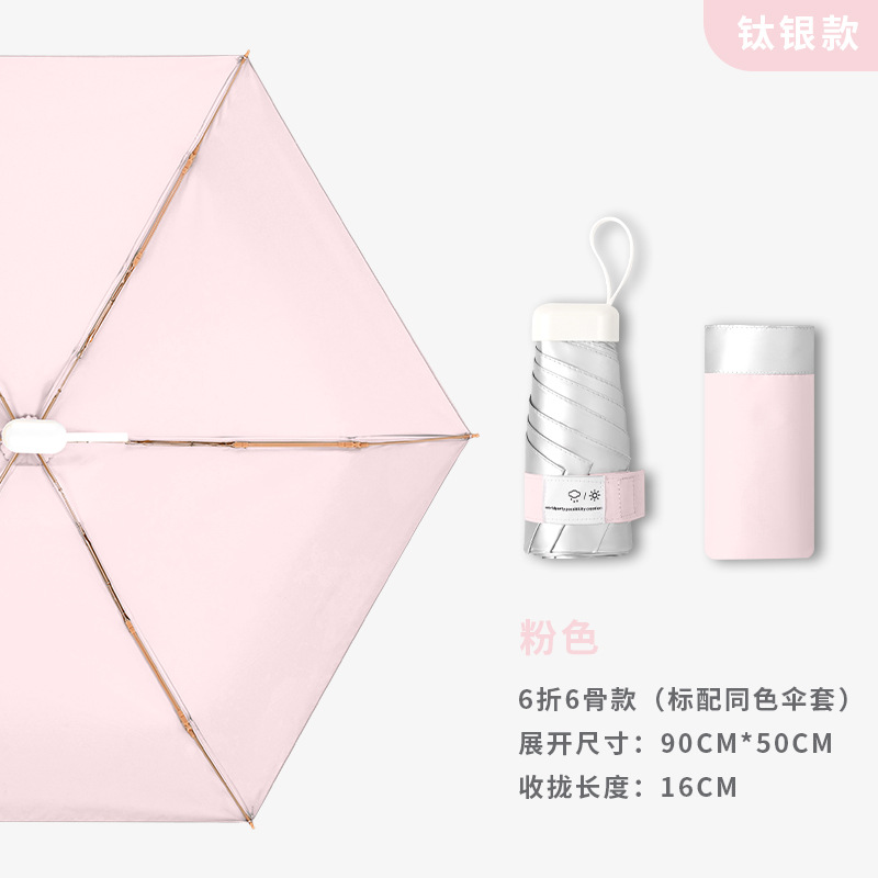 티타늄 실버 우산 도매 파라솔 태양 보호 UV 보호 소형 휴대용 경량 비 또는 빛 여성용 태양 우산