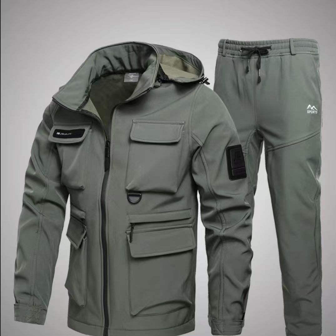 재킷 슈트, 겨울 남성복, 벨벳, 방한, 방풍, 방수, 따뜻한 작업복, 야외 등산복, 두꺼운 가을 스타일