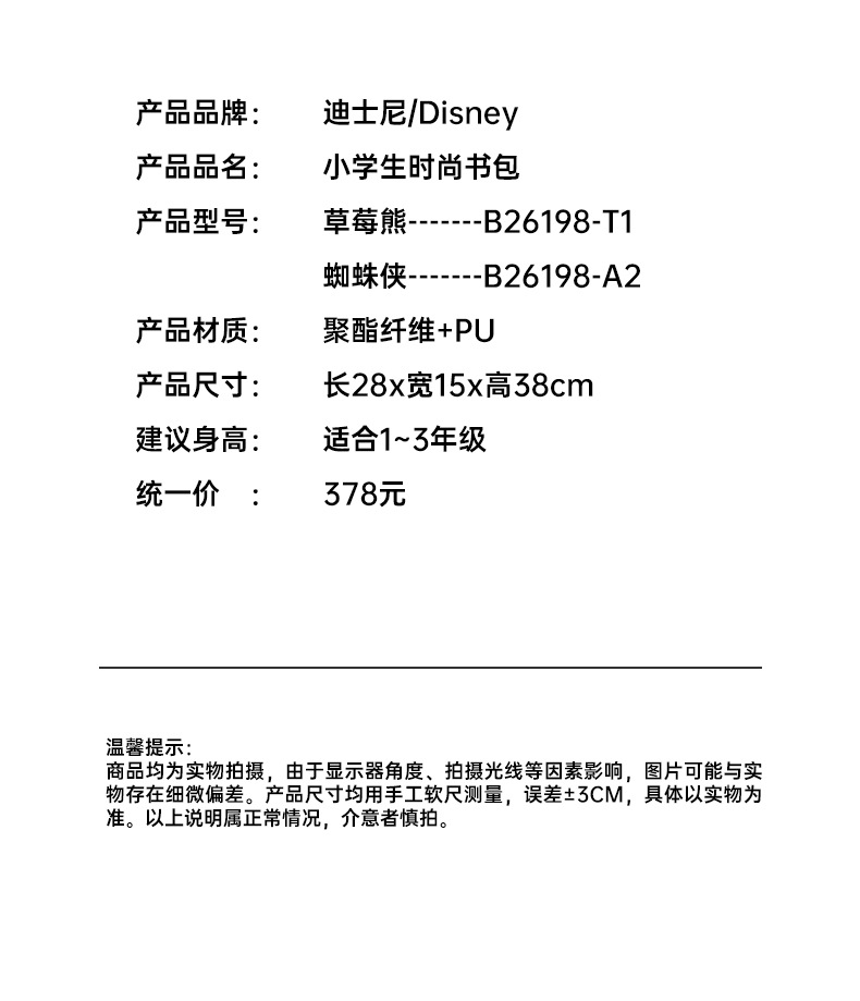 디즈니 딸기 곰 어린이 책가방 초등학생 1-3 학년 척추 보호 및 부담 감소 남성 및 여성 배낭 배낭스토어 가기