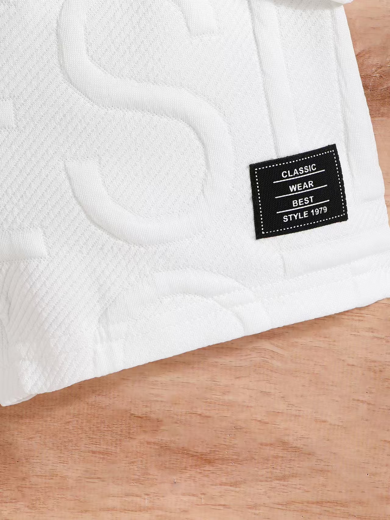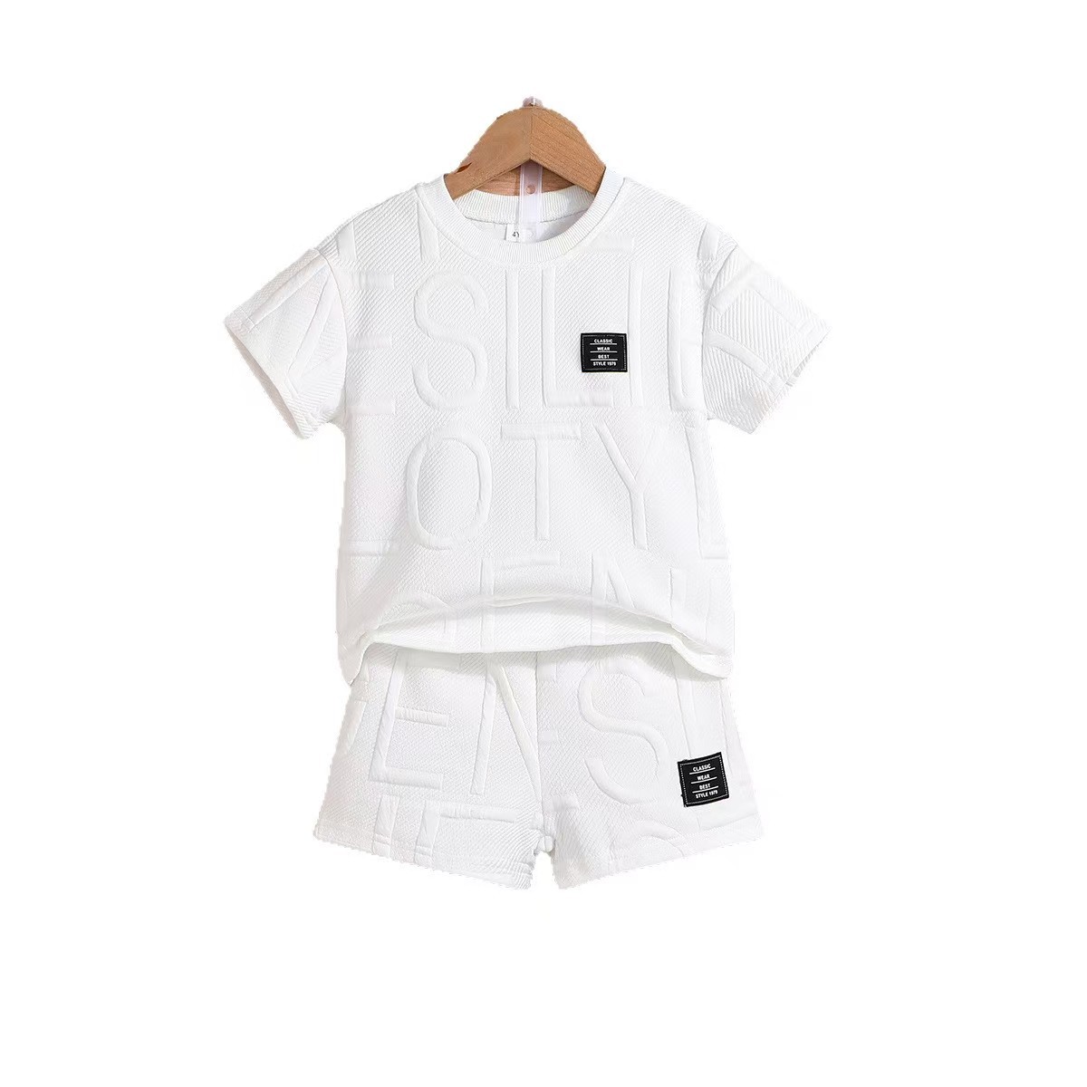 Amazon 유럽 및 미국 아동복 크로스보더 소년 여름 문자 양각 디자인 반팔 탑 + 패션 스포츠 반바지
