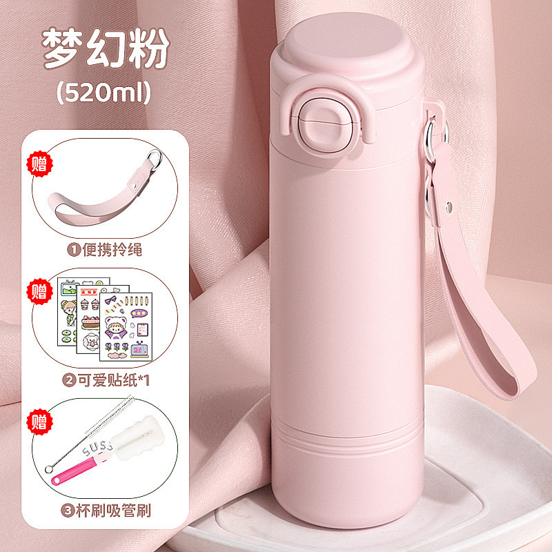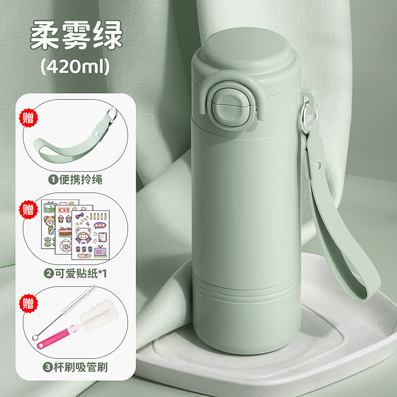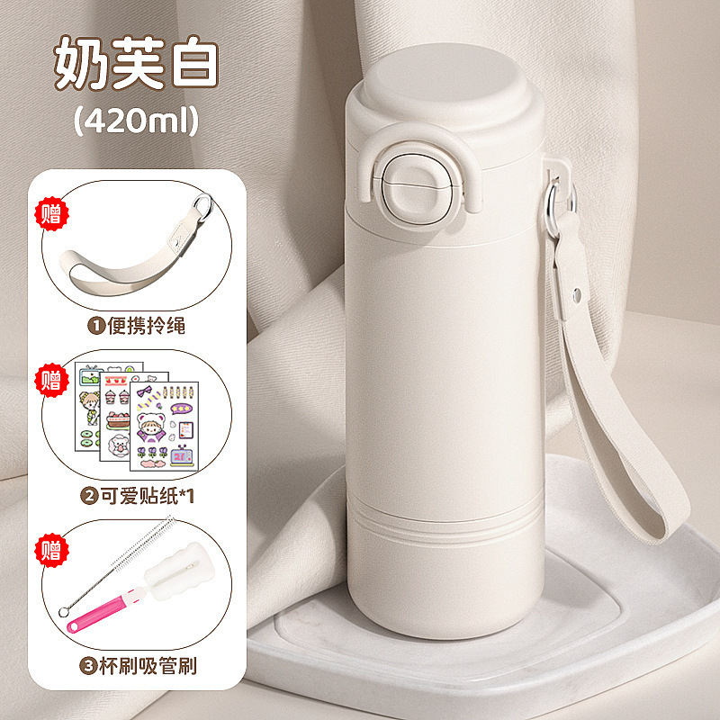 학교에 가는 어린이와 학생을 위한 빨대 보온병 컵 2025 새로운 고급스러운 소녀와 여성을 위한 휴대용 이중 마시는 컵스토어 가기