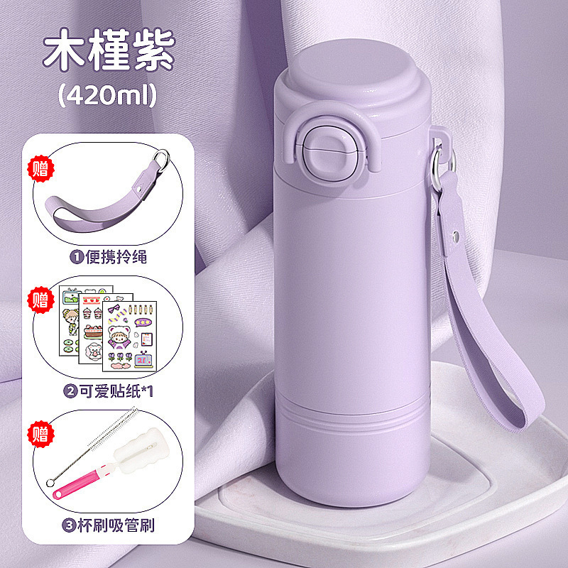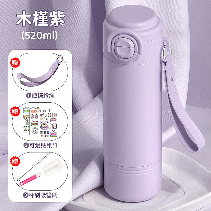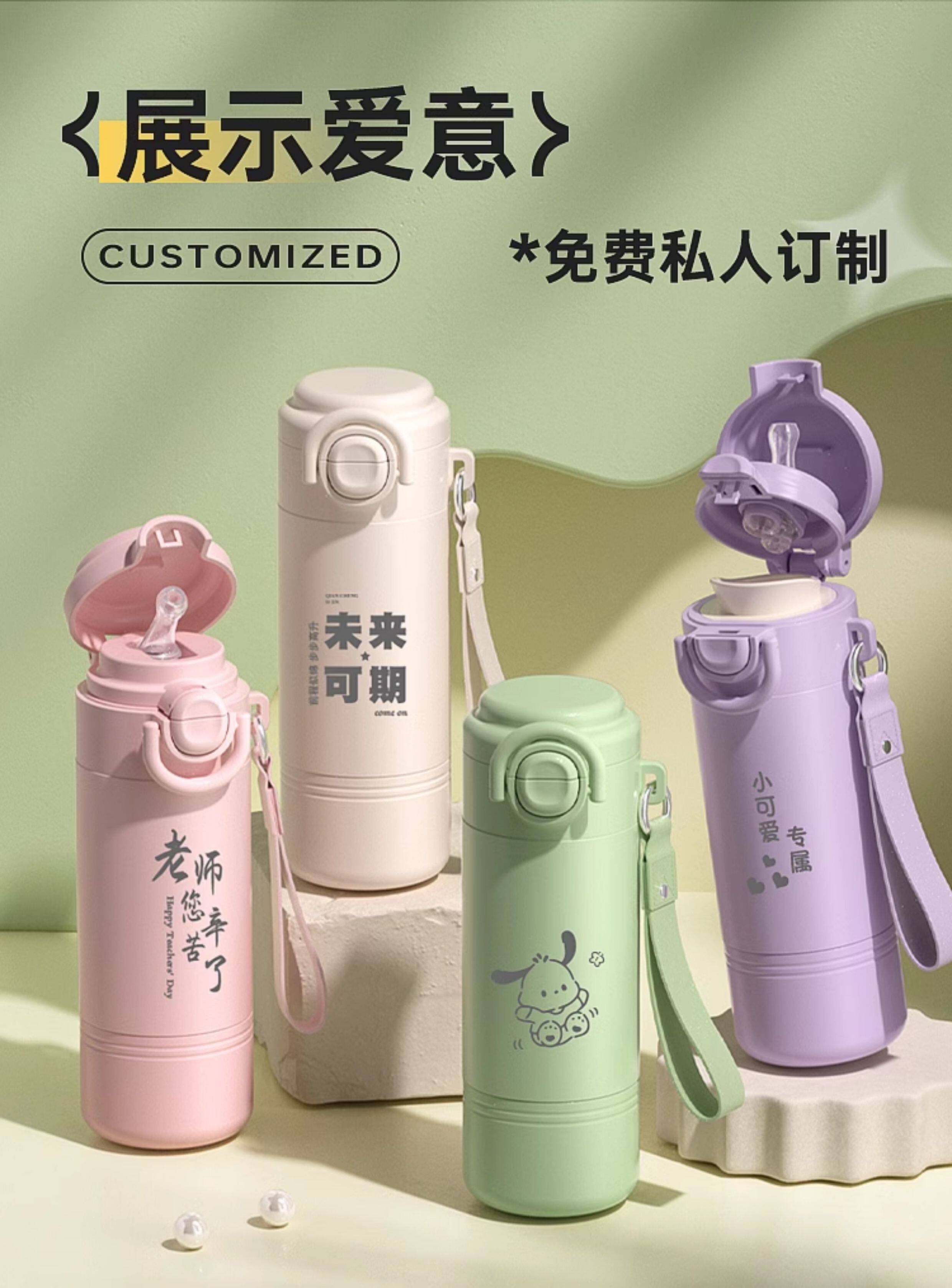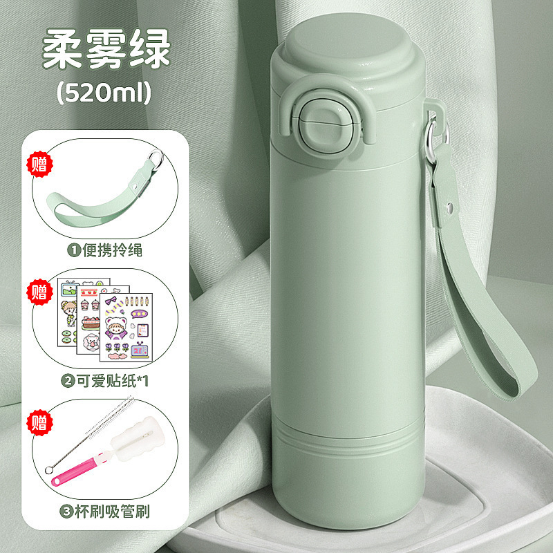 학교에 가는 어린이와 학생을 위한 빨대 보온병 컵 2025 새로운 고급스러운 소녀와 여성을 위한 휴대용 이중 마시는 컵