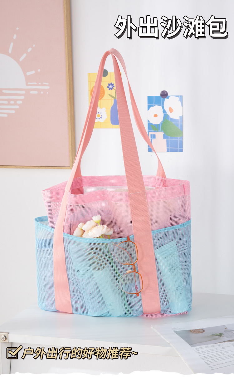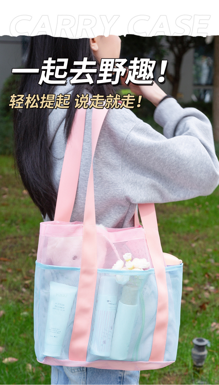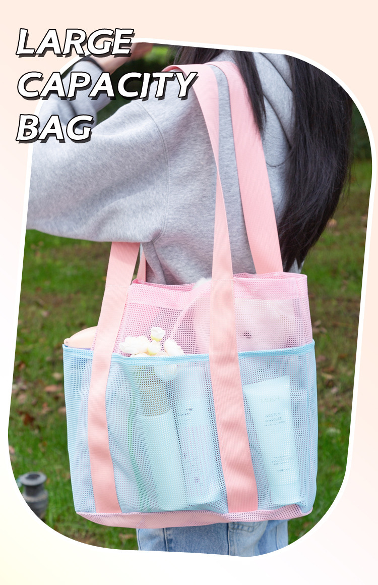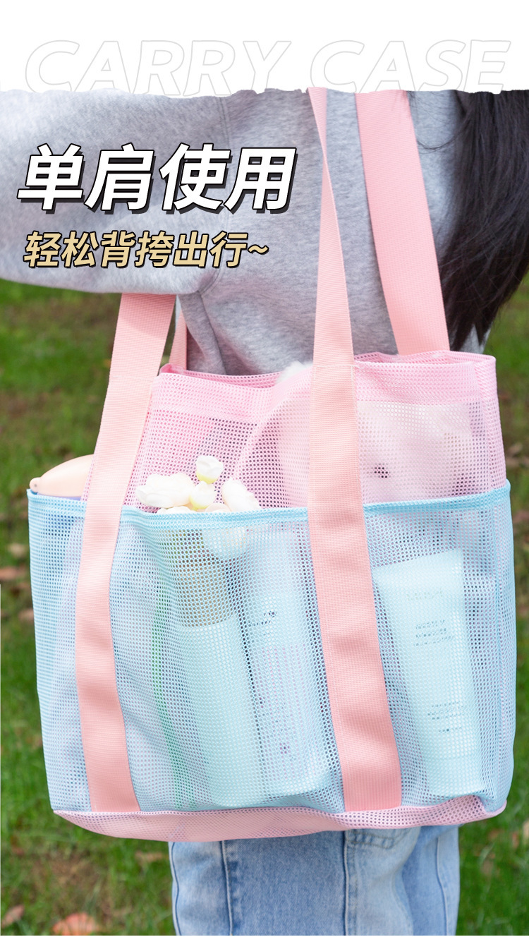 여자를위한 한국 스타일 대형 메쉬 핸드백 배수 메쉬 비치 가방 대용량 수영 세면 용품 및 목욕 보관 가방스토어 가기
