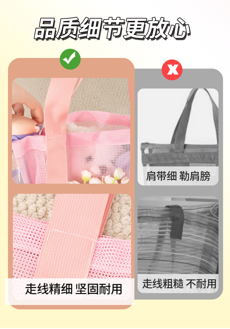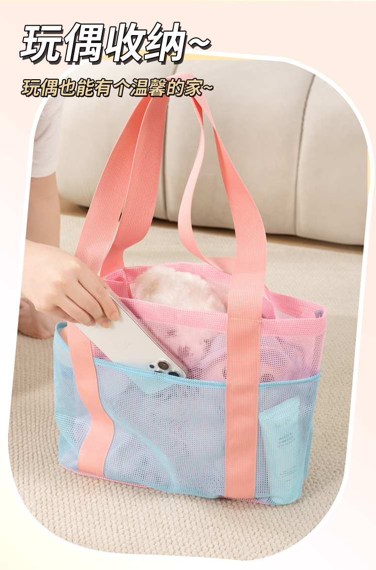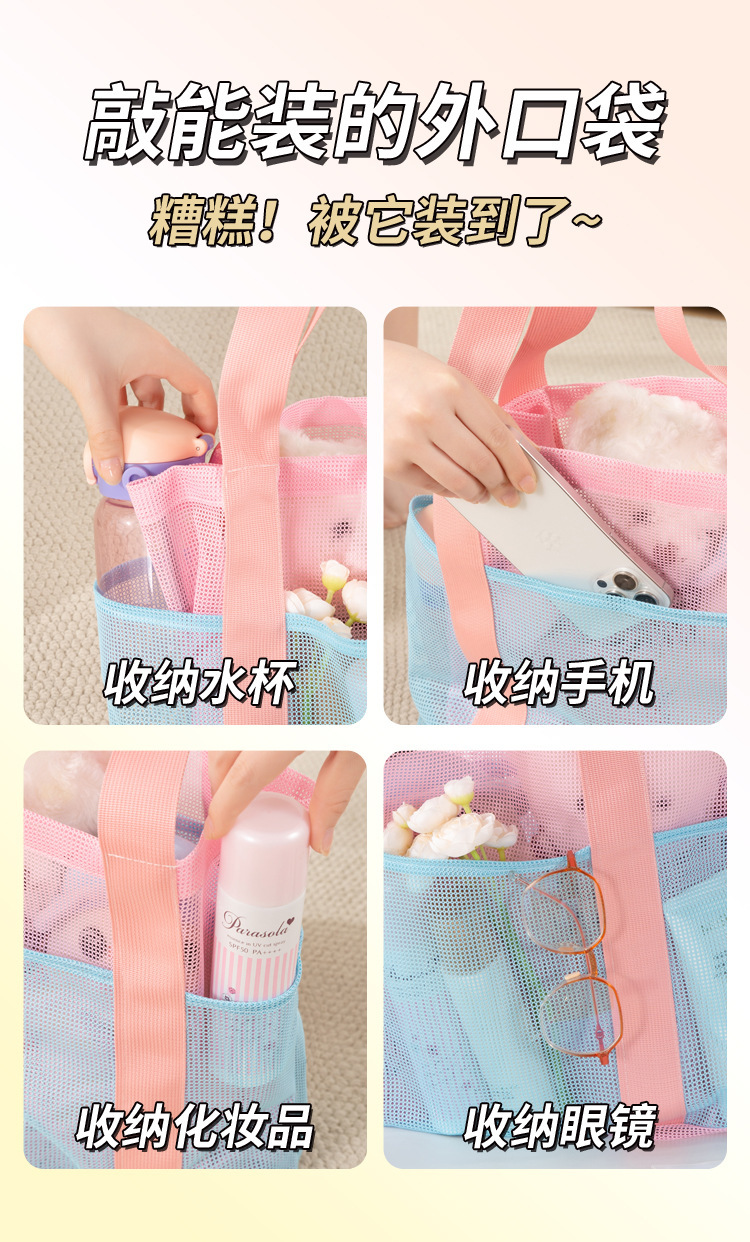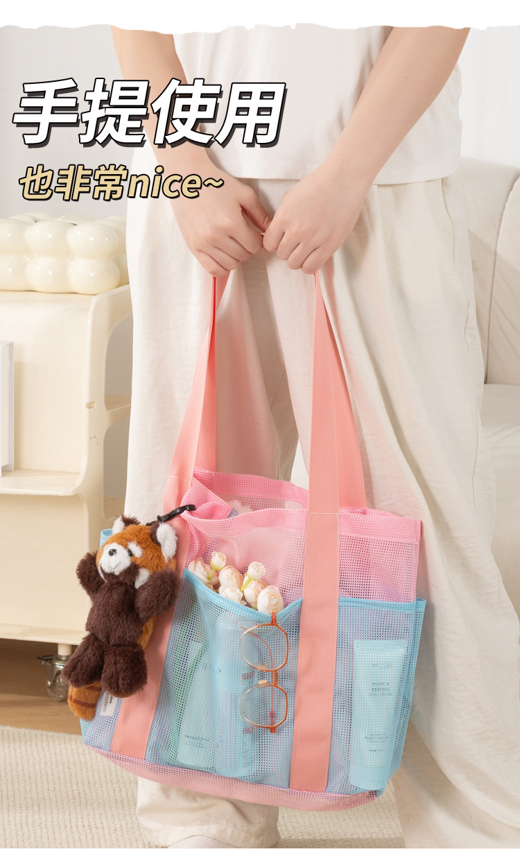 여자를위한 한국 스타일 대형 메쉬 핸드백 배수 메쉬 비치 가방 대용량 수영 세면 용품 및 목욕 보관 가방스토어 가기