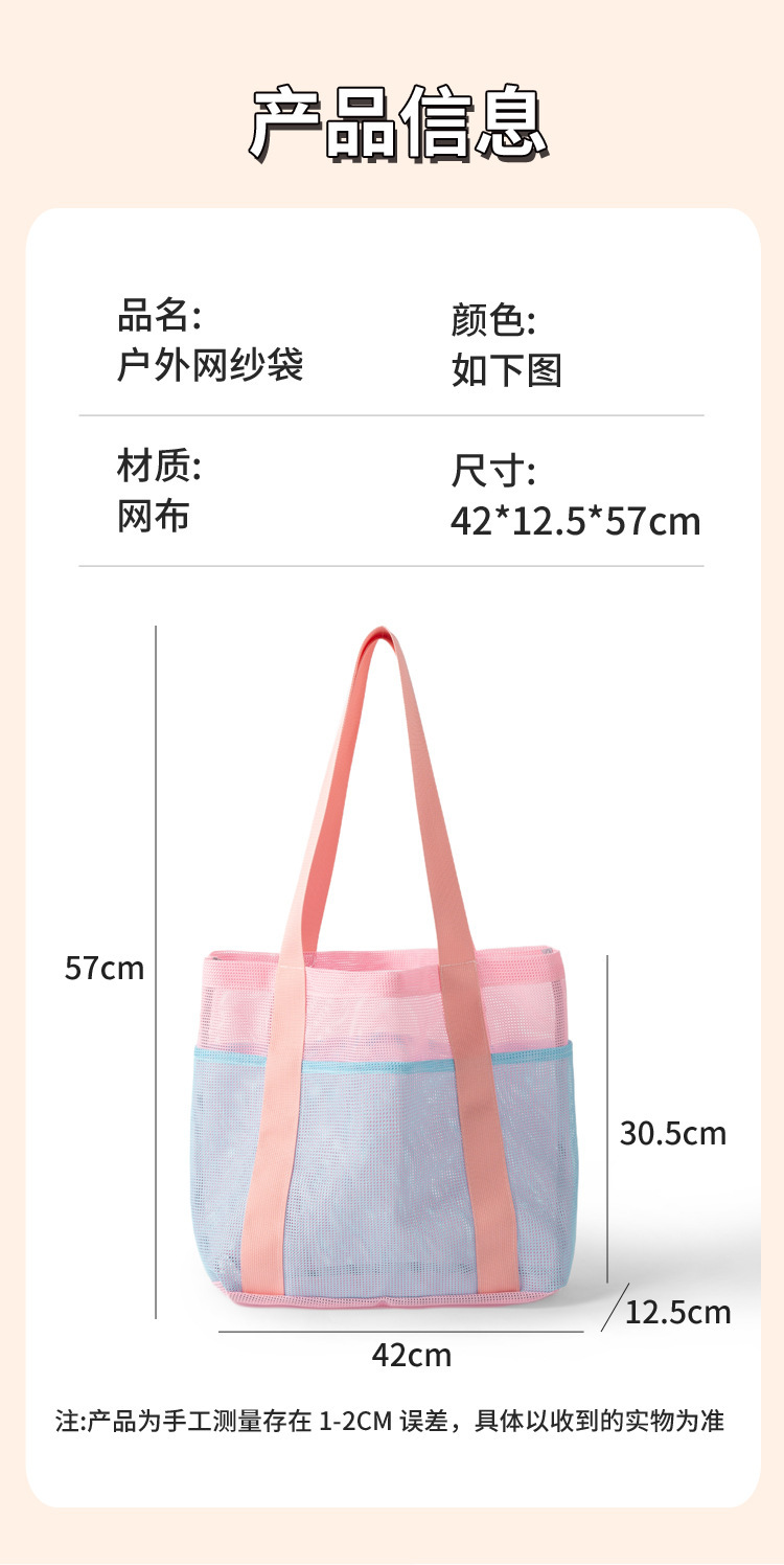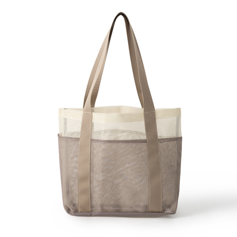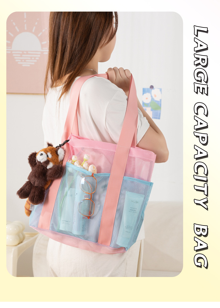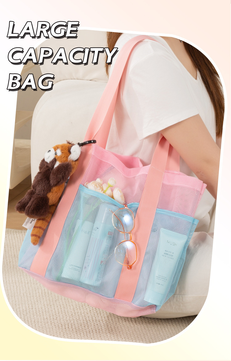 여자를위한 한국 스타일 대형 메쉬 핸드백 배수 메쉬 비치 가방 대용량 수영 세면 용품 및 목욕 보관 가방