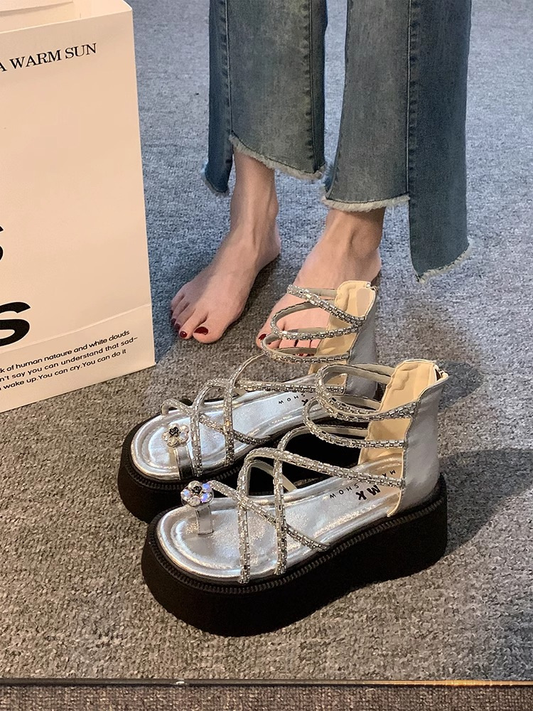여름에 여성을 위한 아름다운 틈새 오픈 토 플라워 키높이 플랫폼 샌들 플러스 사이즈 웨지 힐 메리제인 슈퍼 하이힐스토어 가기