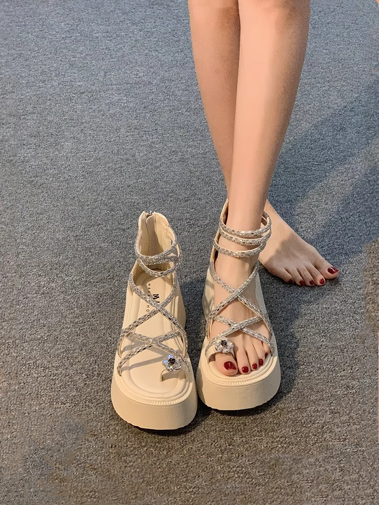여름에 여성을 위한 아름다운 틈새 오픈 토 플라워 키높이 플랫폼 샌들 플러스 사이즈 웨지 힐 메리제인 슈퍼 하이힐