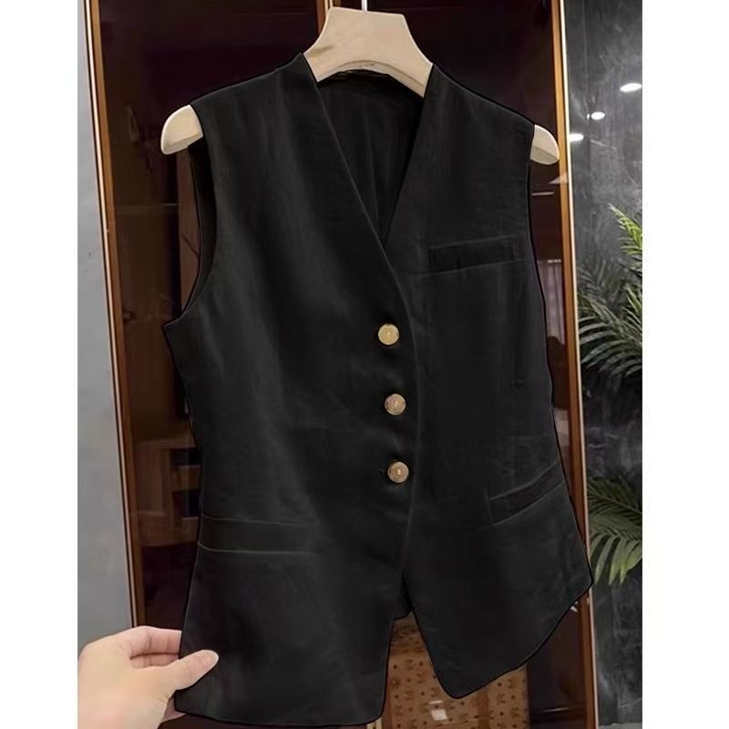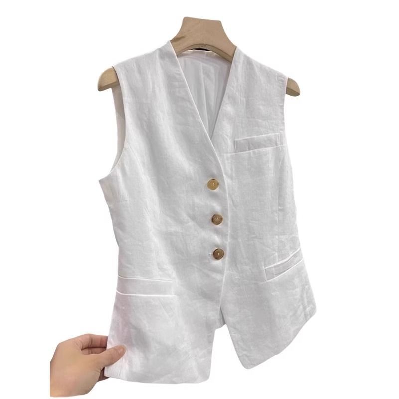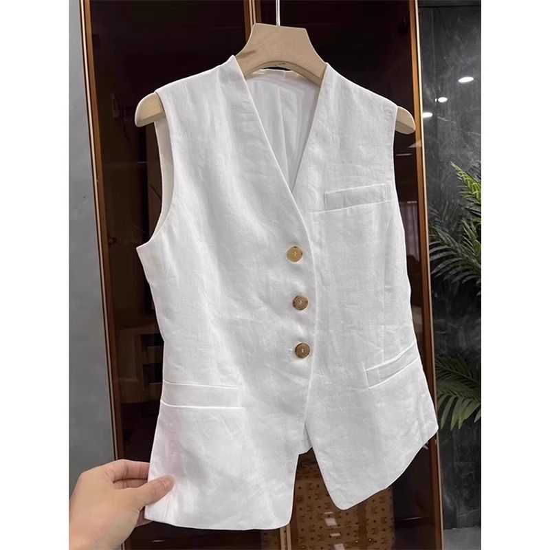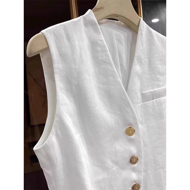 여성을위한 리넨 민소매 정장 조끼 코트 봄, 여름 하이 엔드 복고풍 레이어드 v 넥 코튼과 린넨 조끼 탑 가을스토어 가기