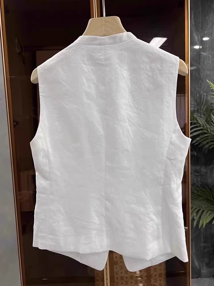 여성을위한 리넨 민소매 정장 조끼 코트 봄, 여름 하이 엔드 복고풍 레이어드 v 넥 코튼과 린넨 조끼 탑 가을