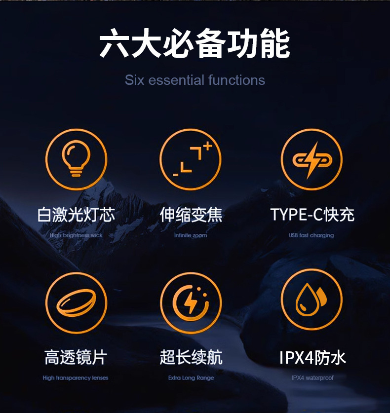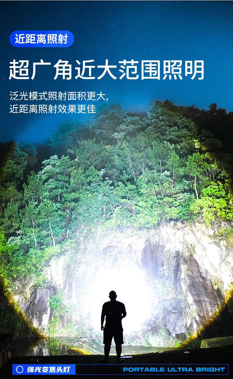 국경 간 다기능 줌 헤드 라이트 강한 빛 높은 루멘 야간 낚시 조명 방수 야외 조명 헤드 라이트 작업 조명스토어 가기