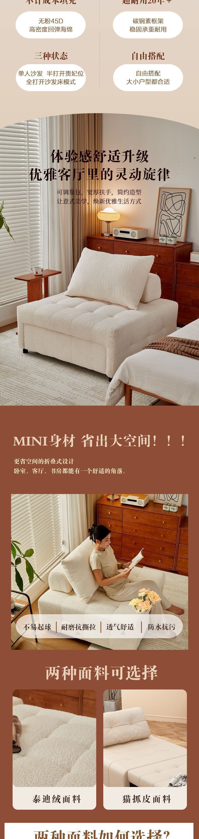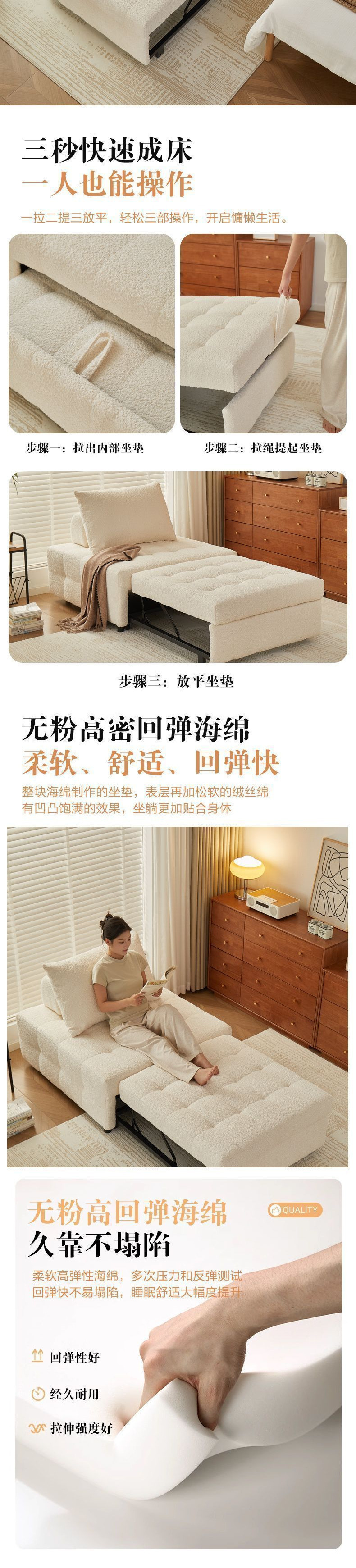 새로운 스타일 게으른 소파 싱글 인터넷 연예인 크림 스타일 이중 목적 소파 침대 접이식 작은 아파트 거실 홈 가구