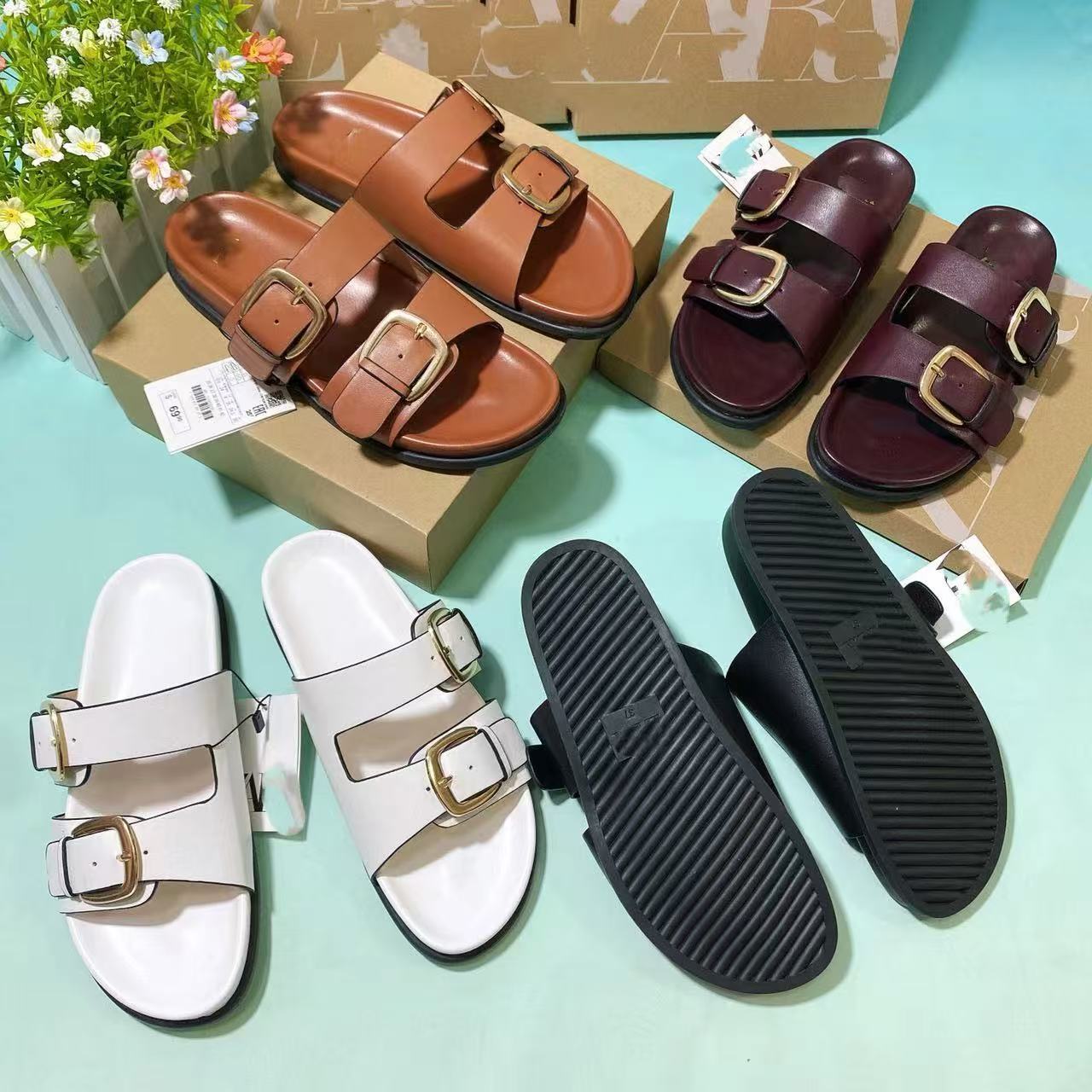 ZR의 새로운 크로스보더 인기 더블 버튼 하드웨어 장식 유럽과 미국의 패셔너블한 두꺼운 밑창 슬리퍼 FashionabIe-SIippeys