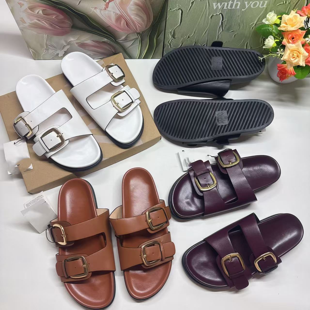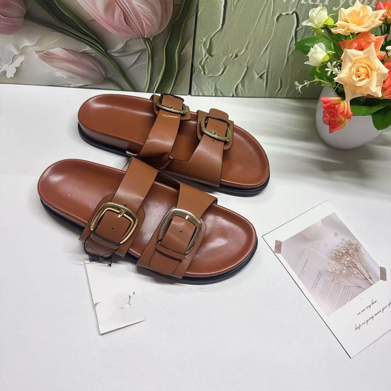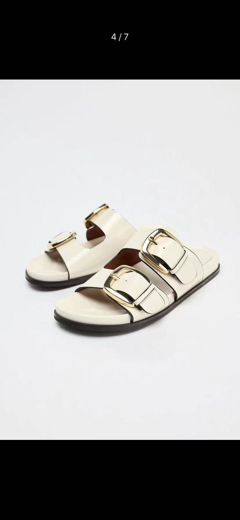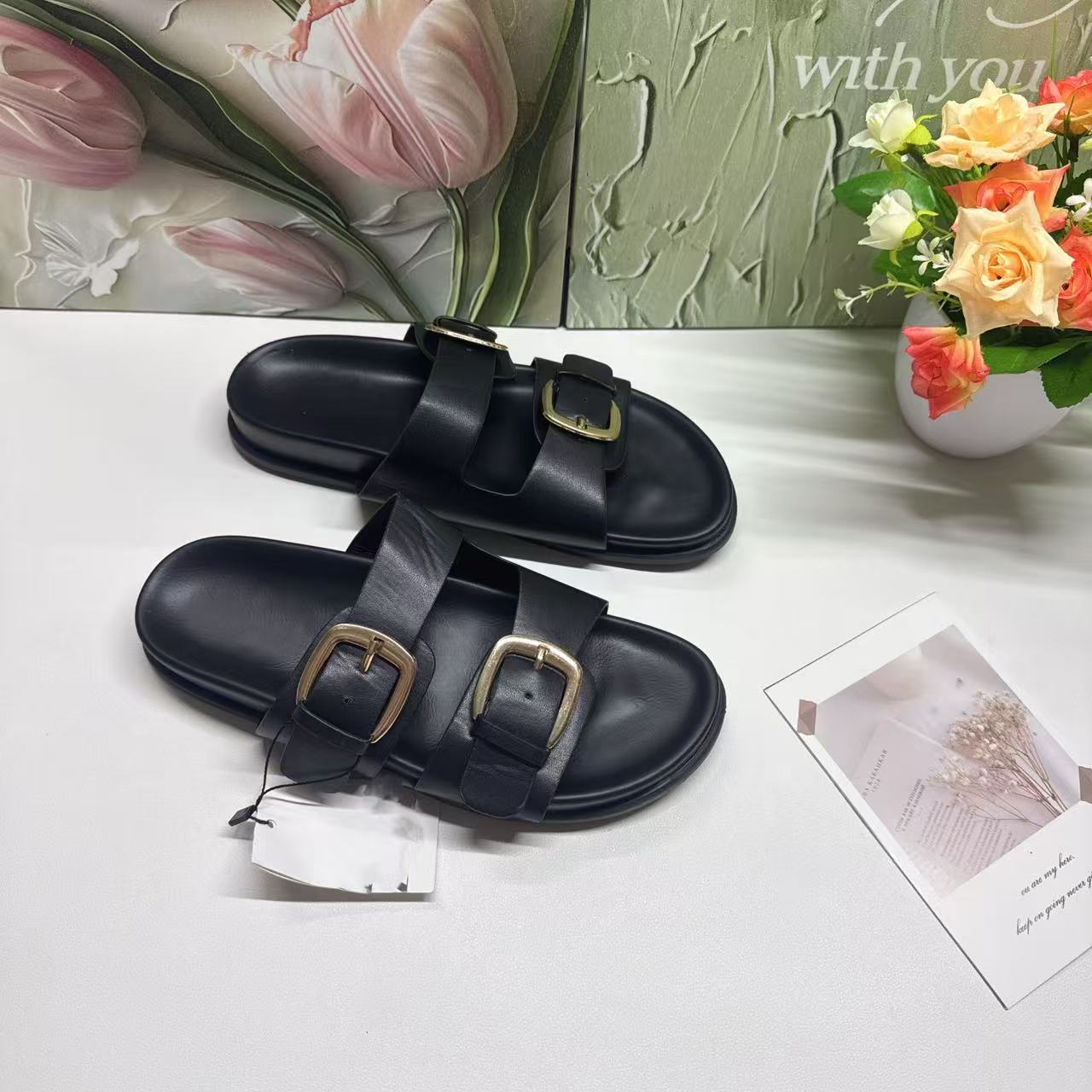 ZR의 새로운 크로스보더 인기 더블 버튼 하드웨어 장식 유럽과 미국의 패셔너블한 두꺼운 밑창 슬리퍼 FashionabIe-SIippeys스토어 가기