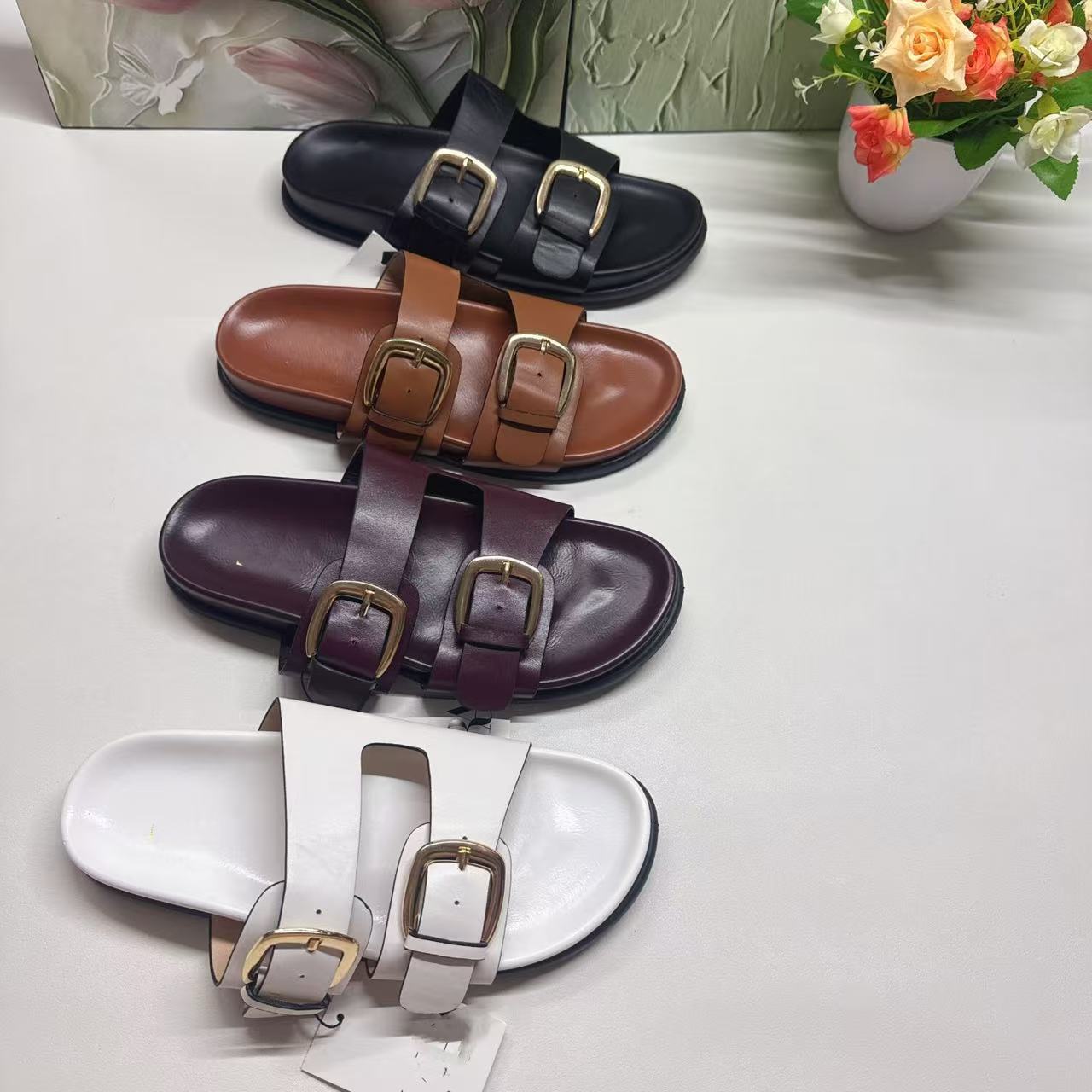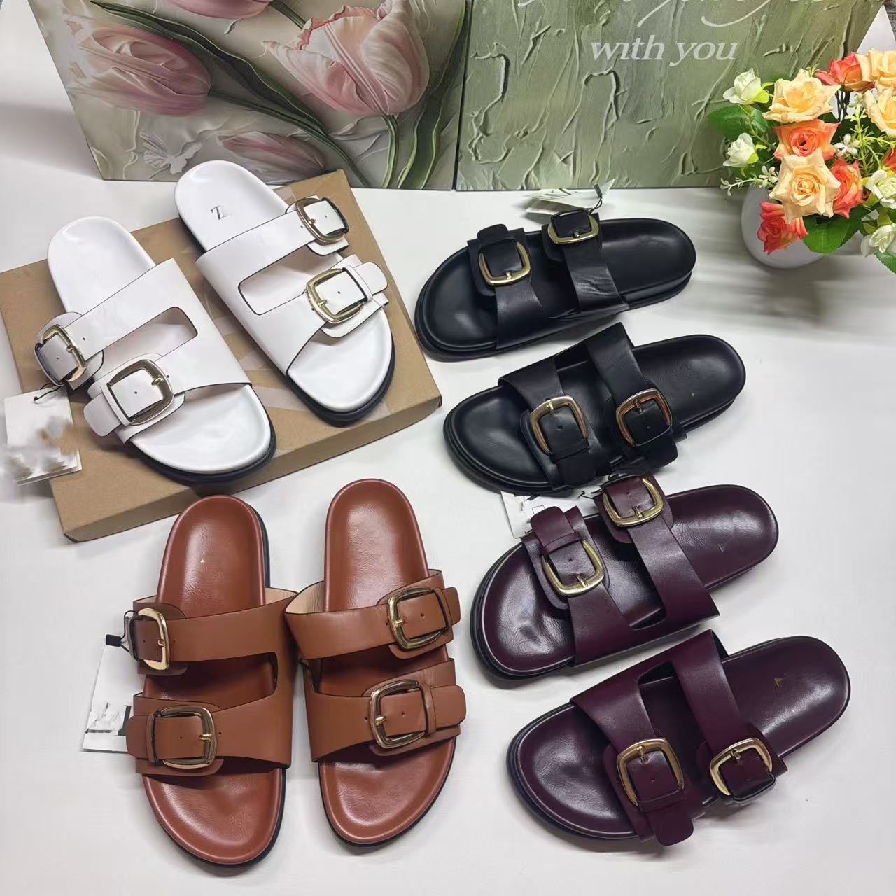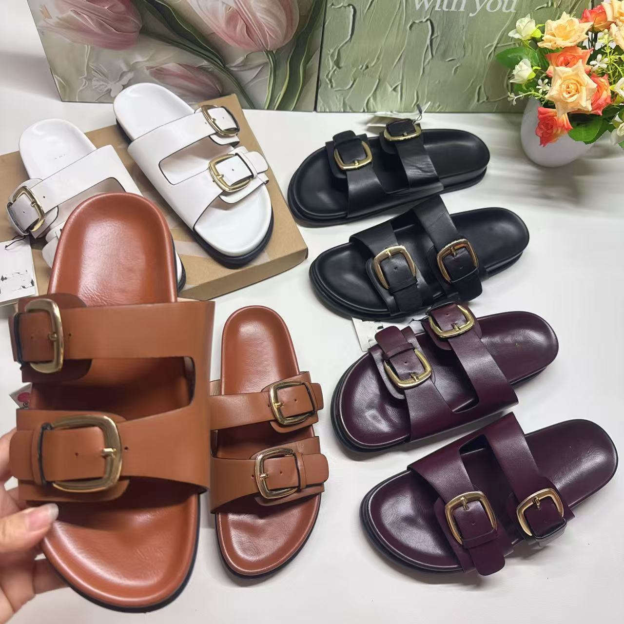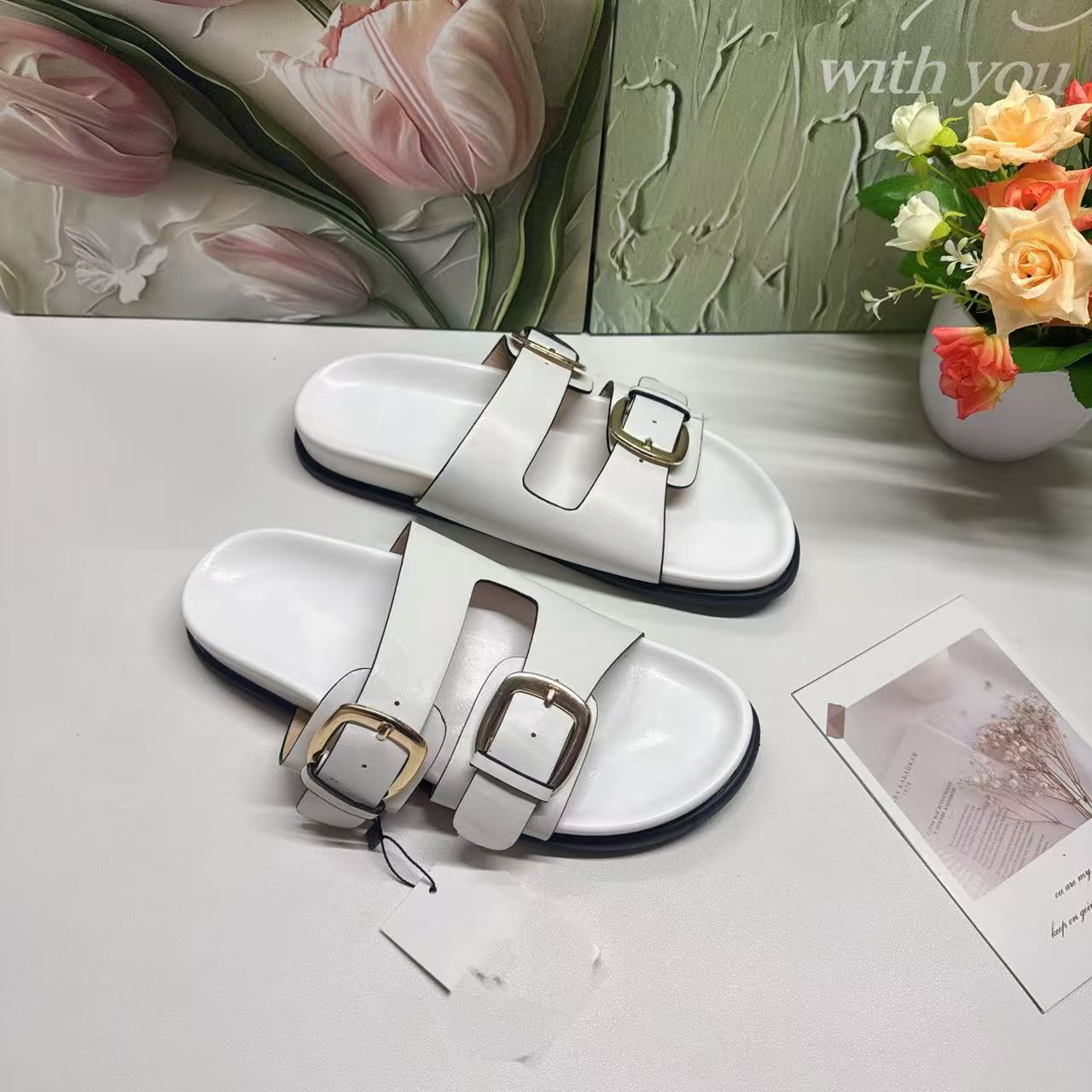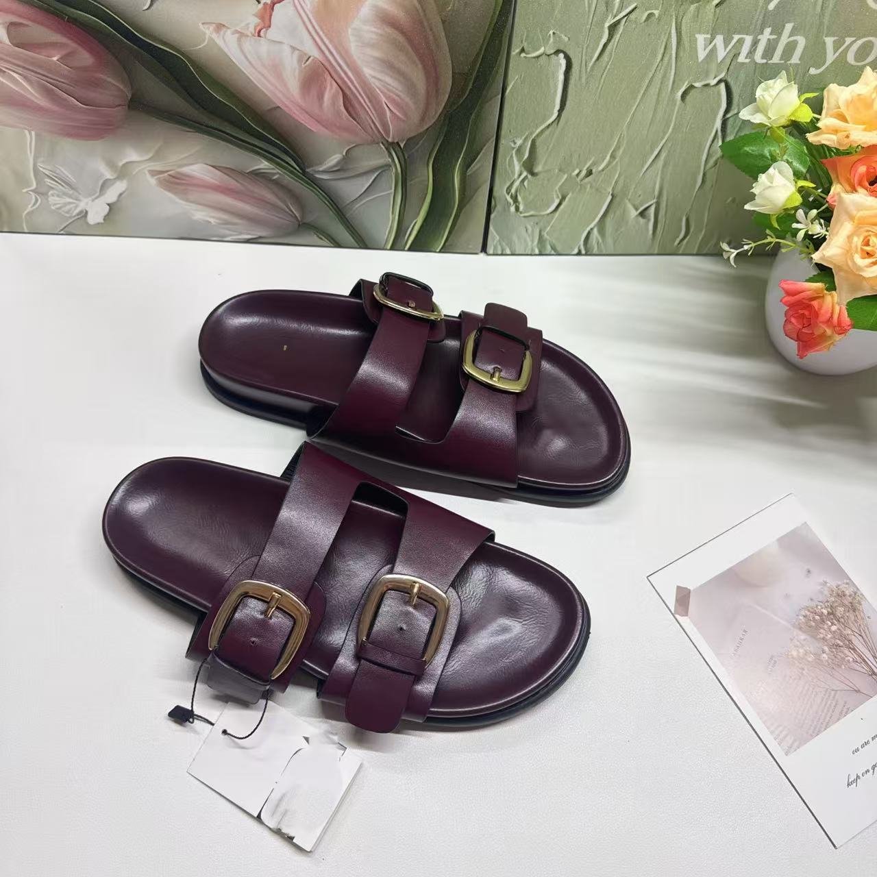 ZR의 새로운 크로스보더 인기 더블 버튼 하드웨어 장식 유럽과 미국의 패셔너블한 두꺼운 밑창 슬리퍼 FashionabIe-SIippeys스토어 가기