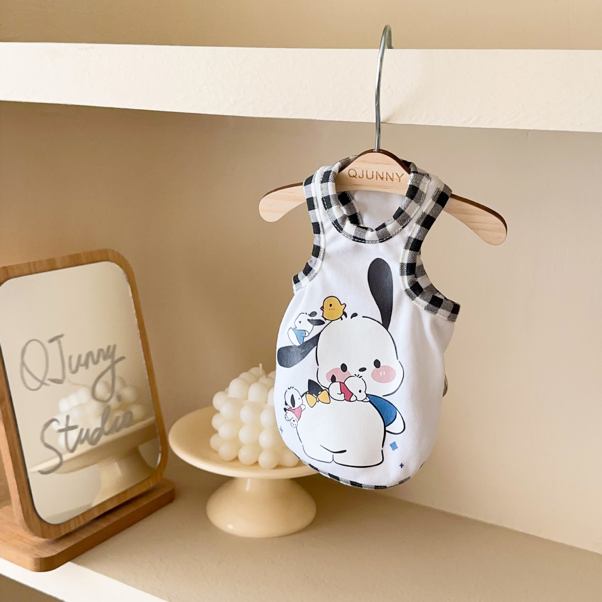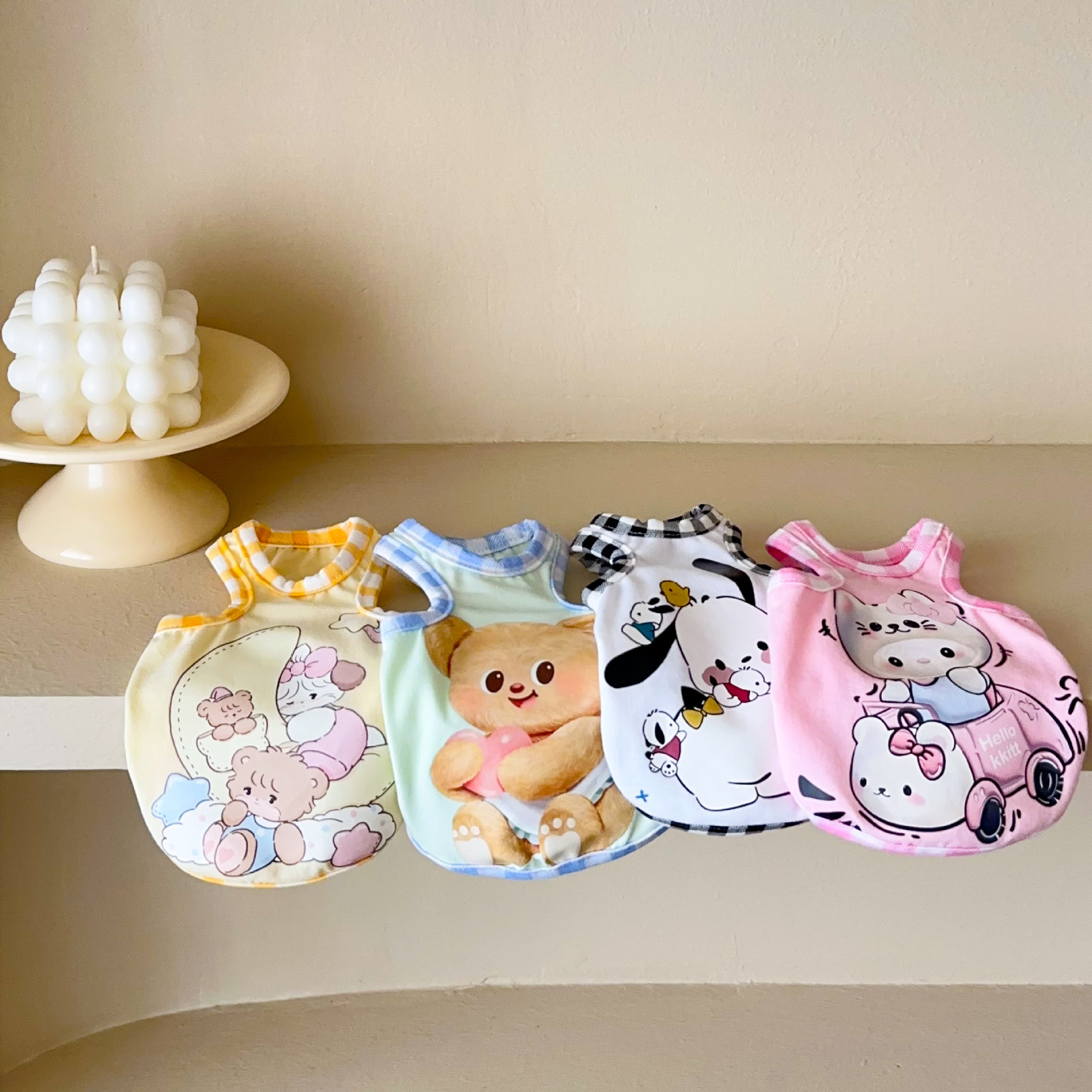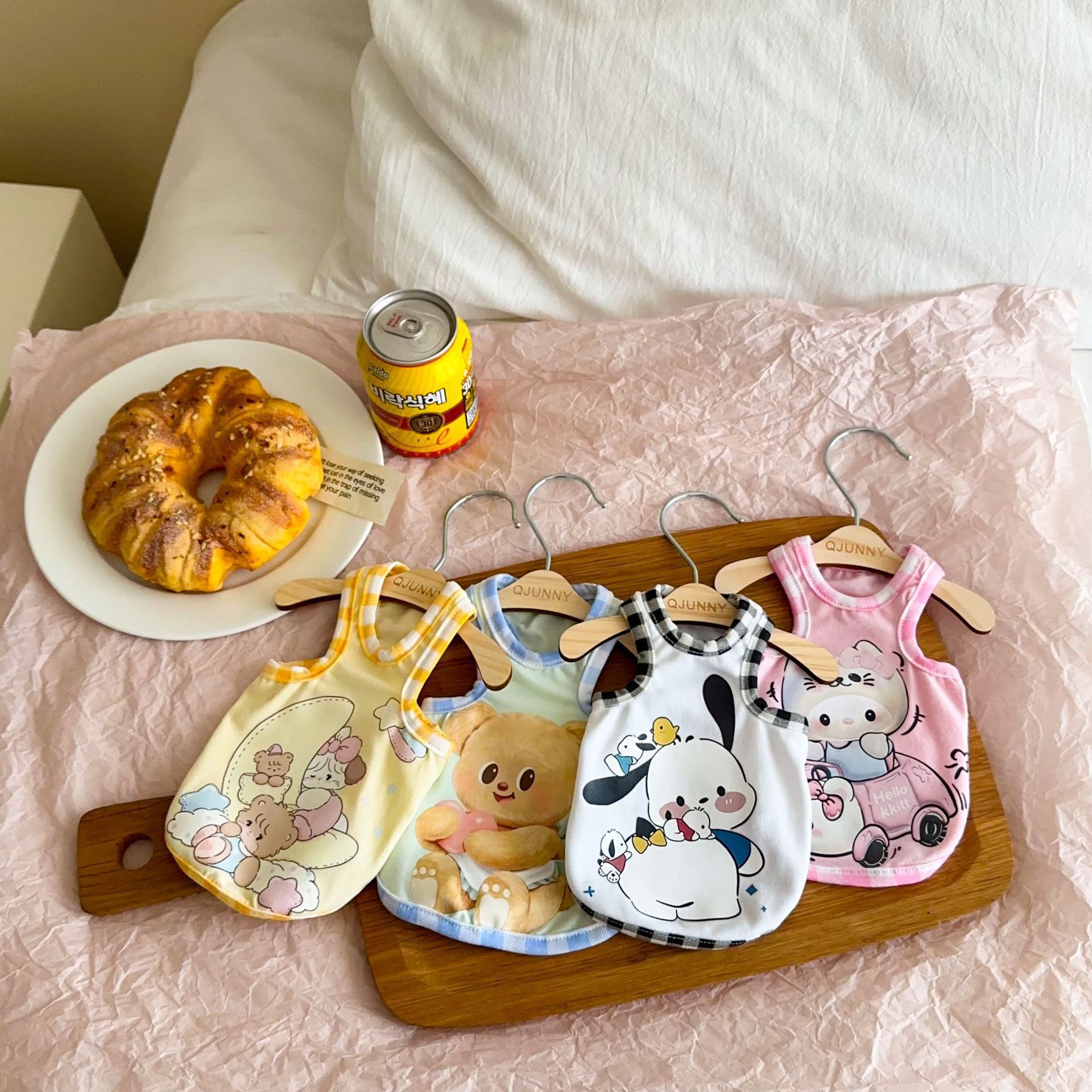 개와 고양이를 위한 봄 여름 애완동물 가정복, 소형견 애완동물 옷, 한국 면 만화 강아지 조끼스토어 가기