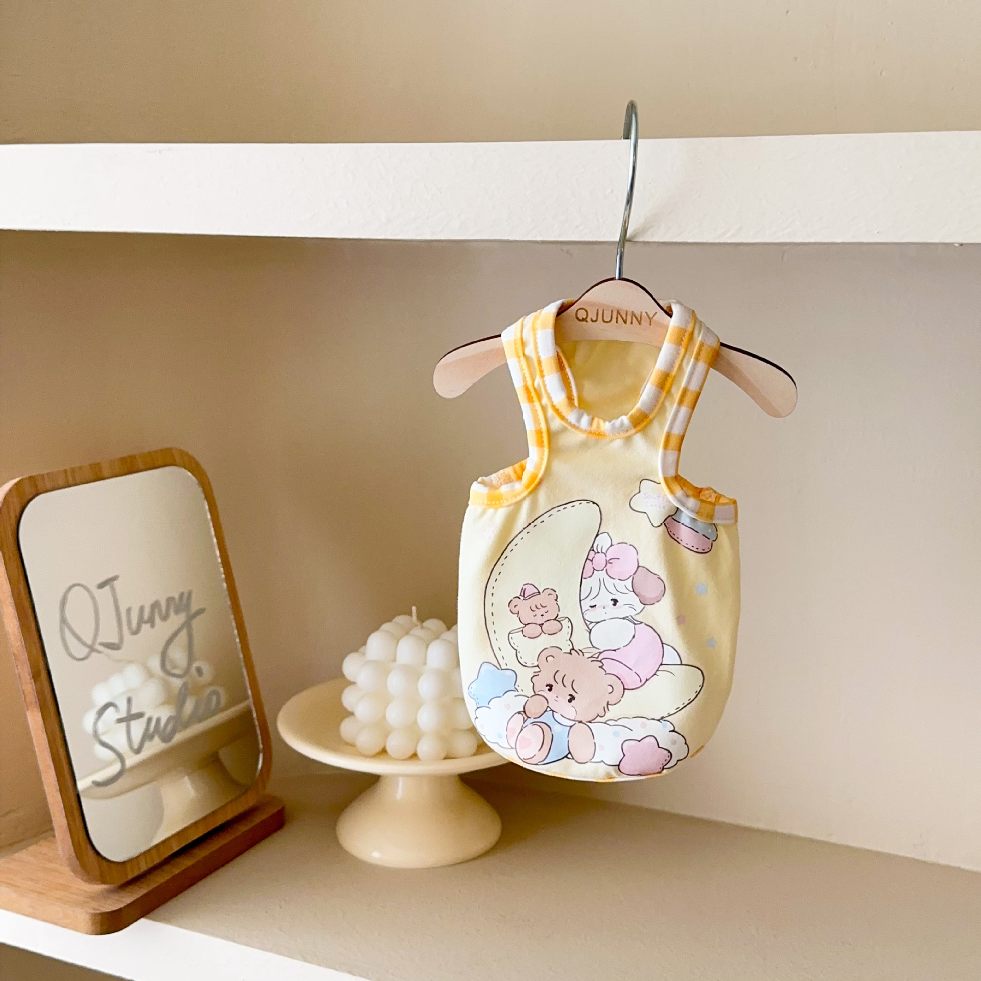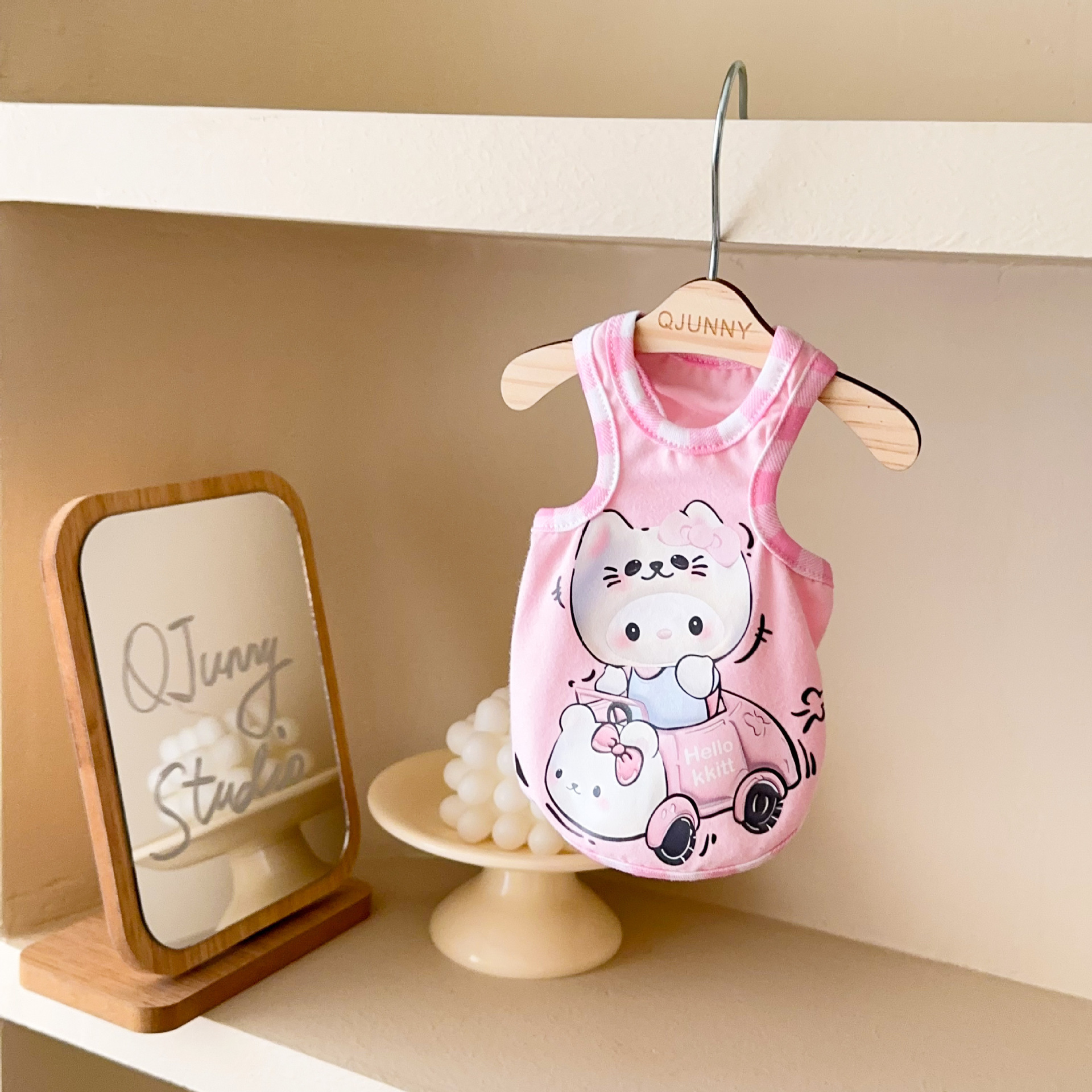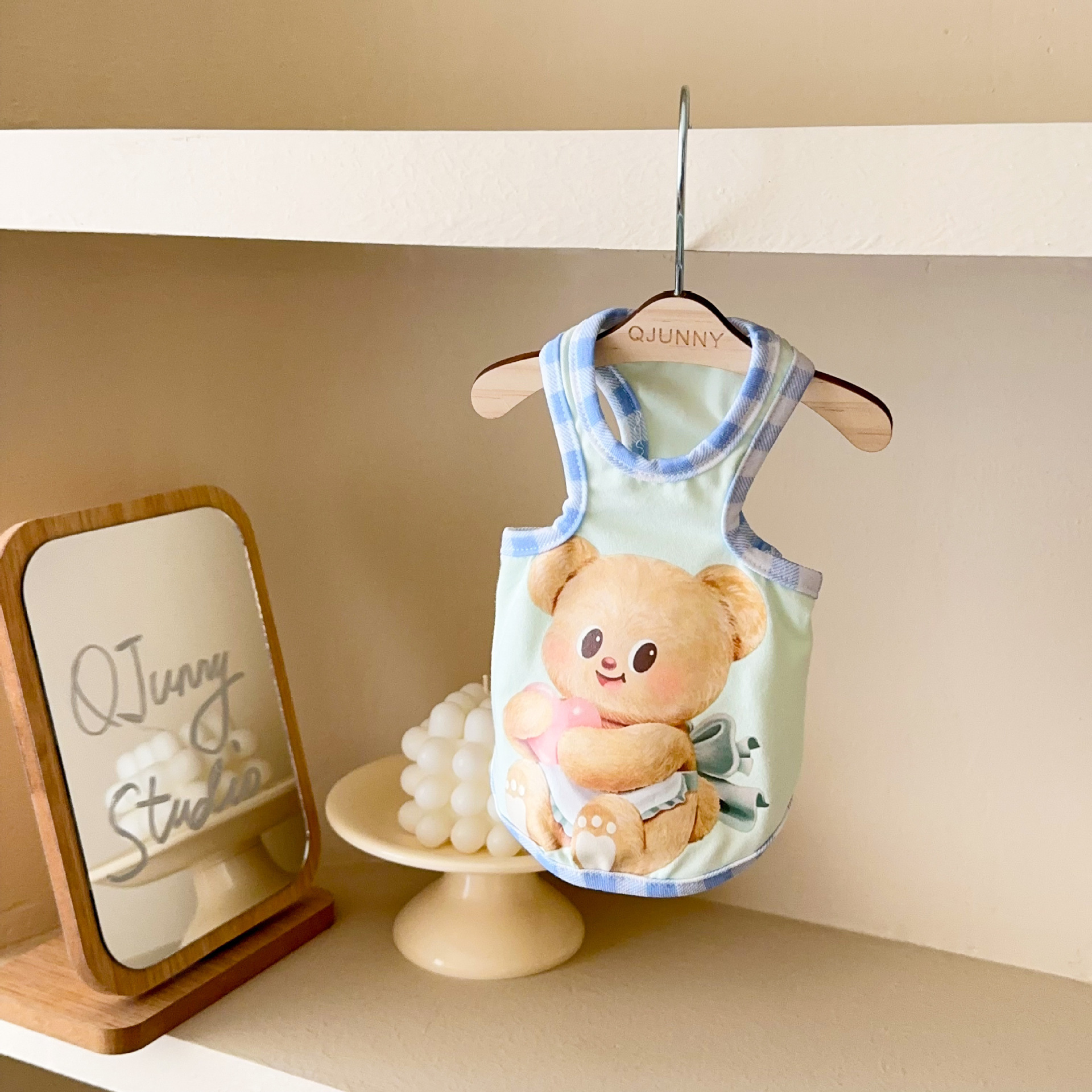 개와 고양이를 위한 봄 여름 애완동물 가정복, 소형견 애완동물 옷, 한국 면 만화 강아지 조끼스토어 가기