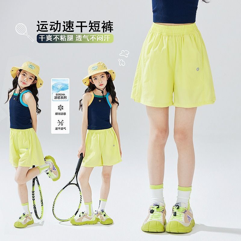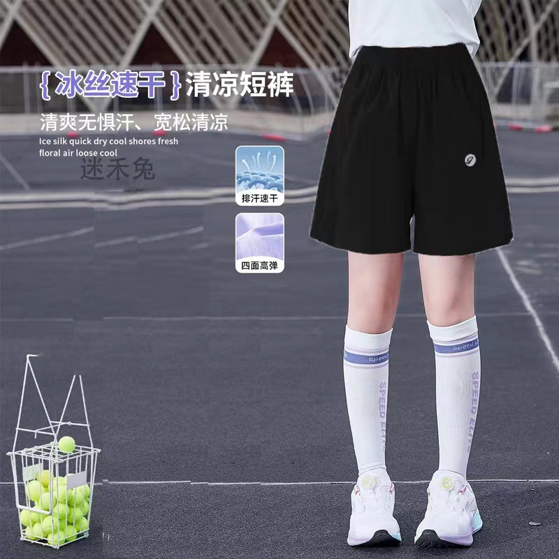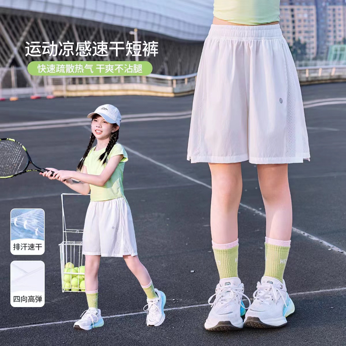 여자 아이스 실크 반바지 여름 2025 새로운 스포츠 바지 어린이 여름 착용 통기성 속건 바지 중대형 어린이를위한 얇은 스타일스토어 가기