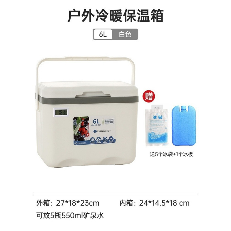 • 오래 지속되는 보온성을 갖춘 흰색 6L 온도계 모델 [얼음주머니 5개 + 얼음판 1개 무료]
