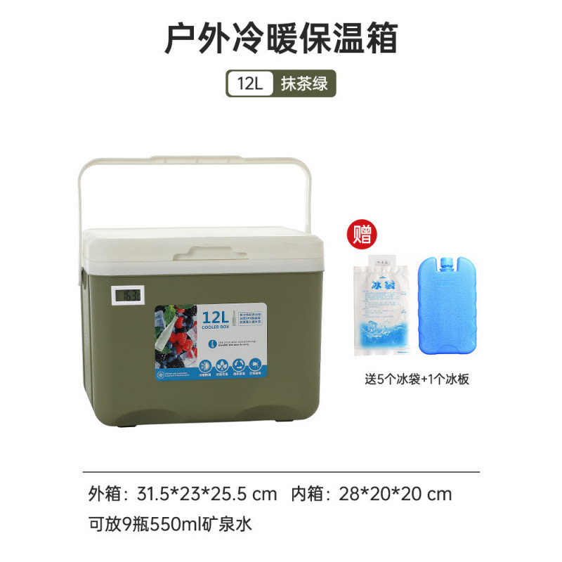 • 오래 지속되는 보온 기능을 갖춘 그린 12L 온도계 모델 [얼음주머니 5개 + 얼음판 1개 무료]