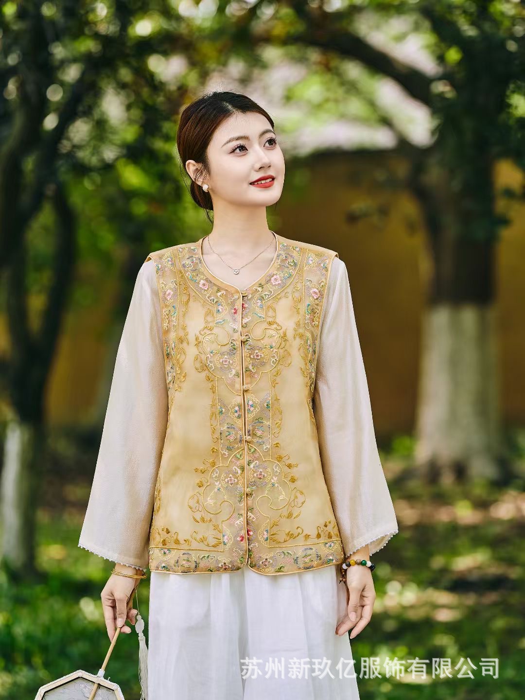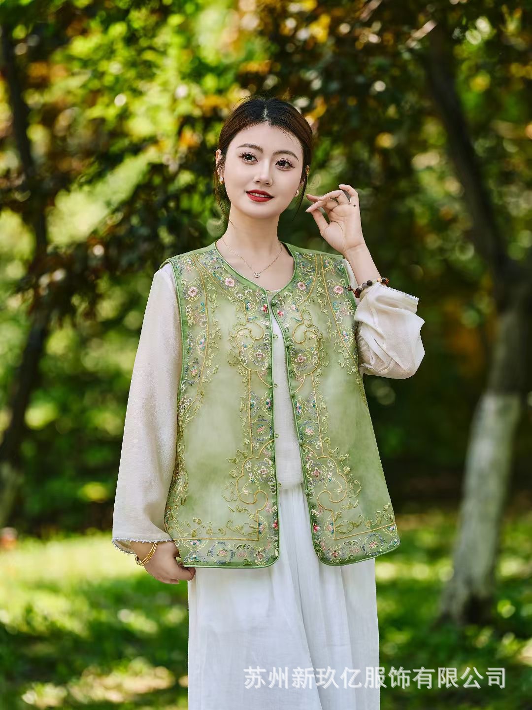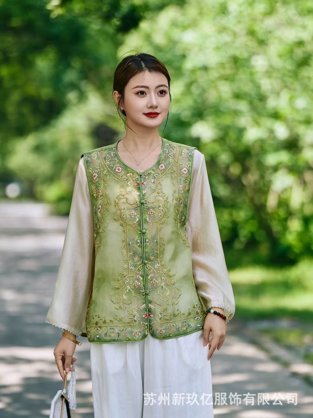 여성을위한 새로운 중국 스타일 국립 스타일 Organza 중공업 자수 라운드 넥 조끼 2025 여름 새로운 민족 스타일 복고풍 조끼