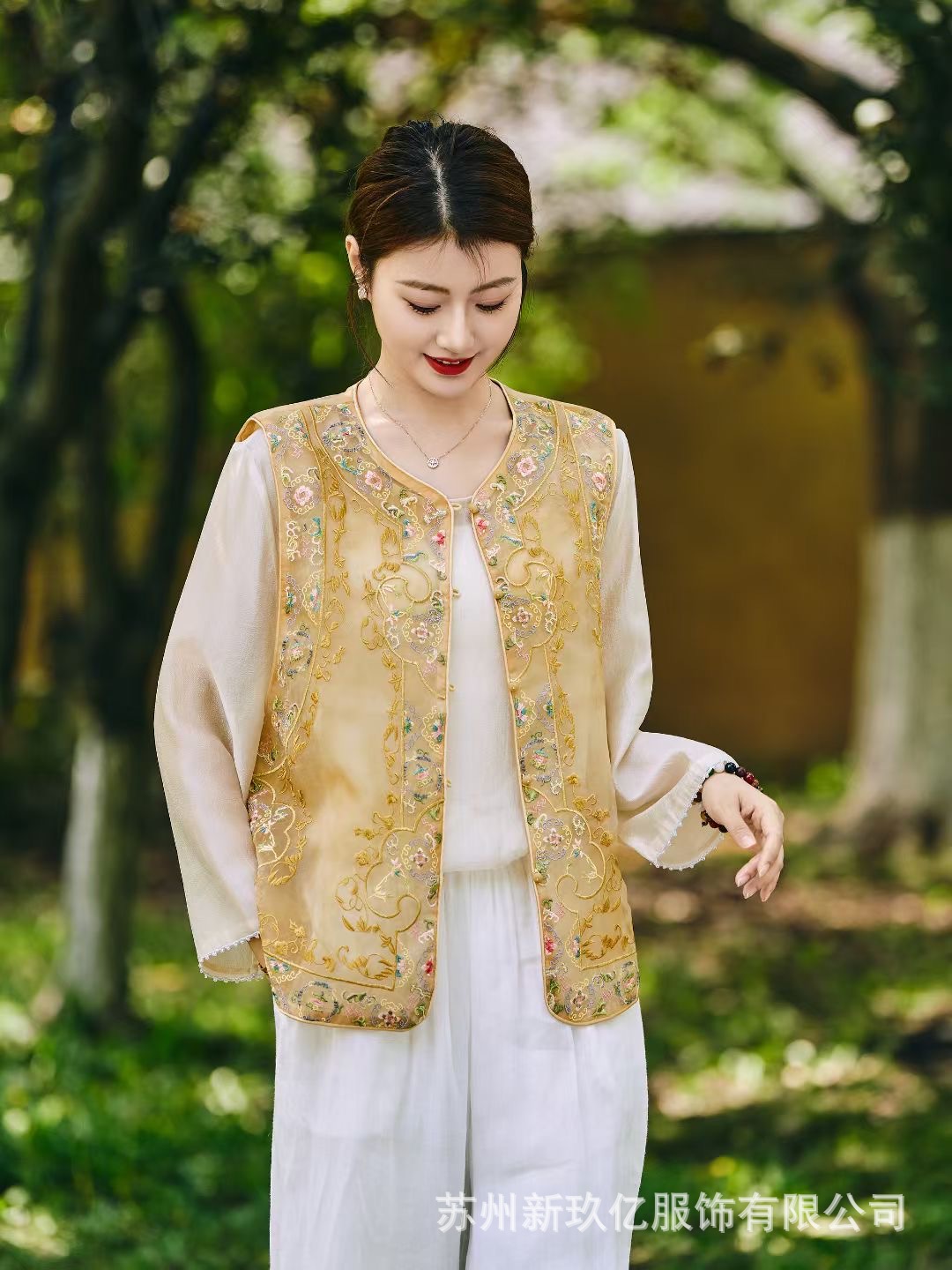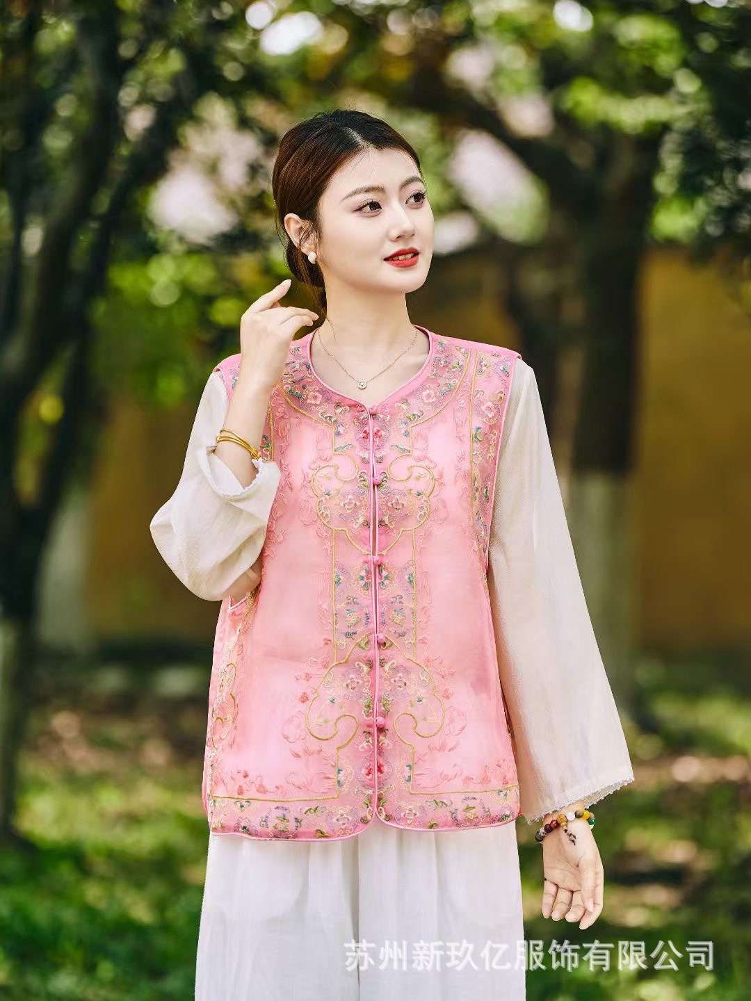 여성을위한 새로운 중국 스타일 국립 스타일 Organza 중공업 자수 라운드 넥 조끼 2025 여름 새로운 민족 스타일 복고풍 조끼스토어 가기
