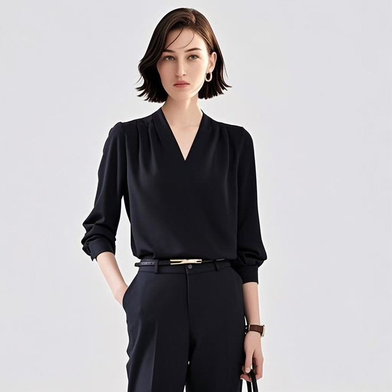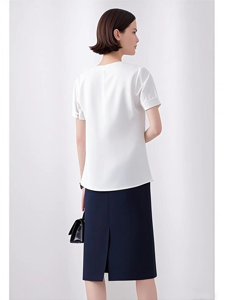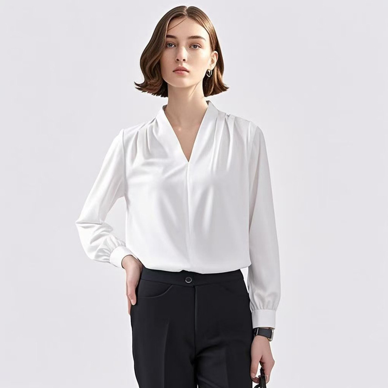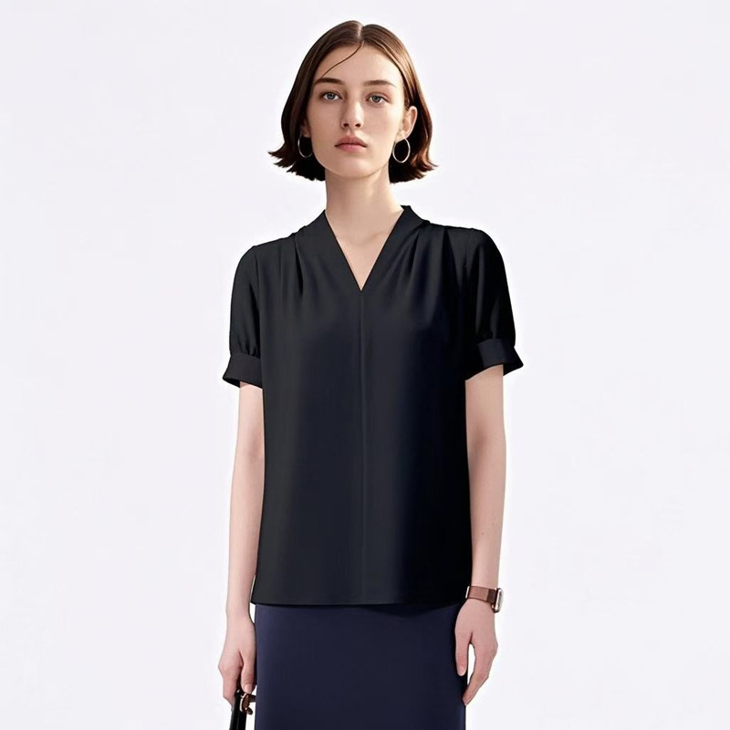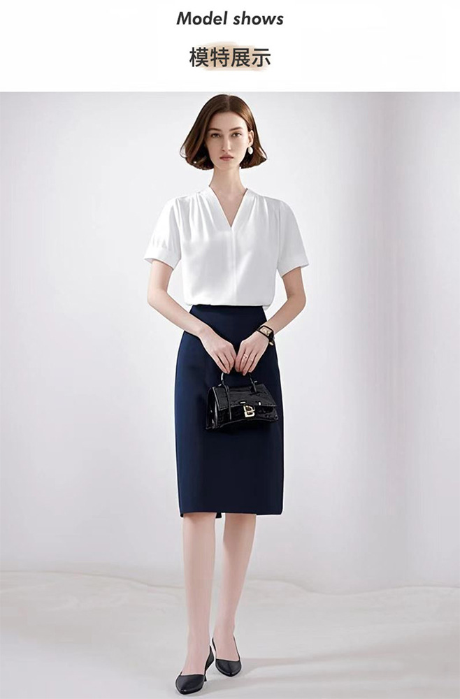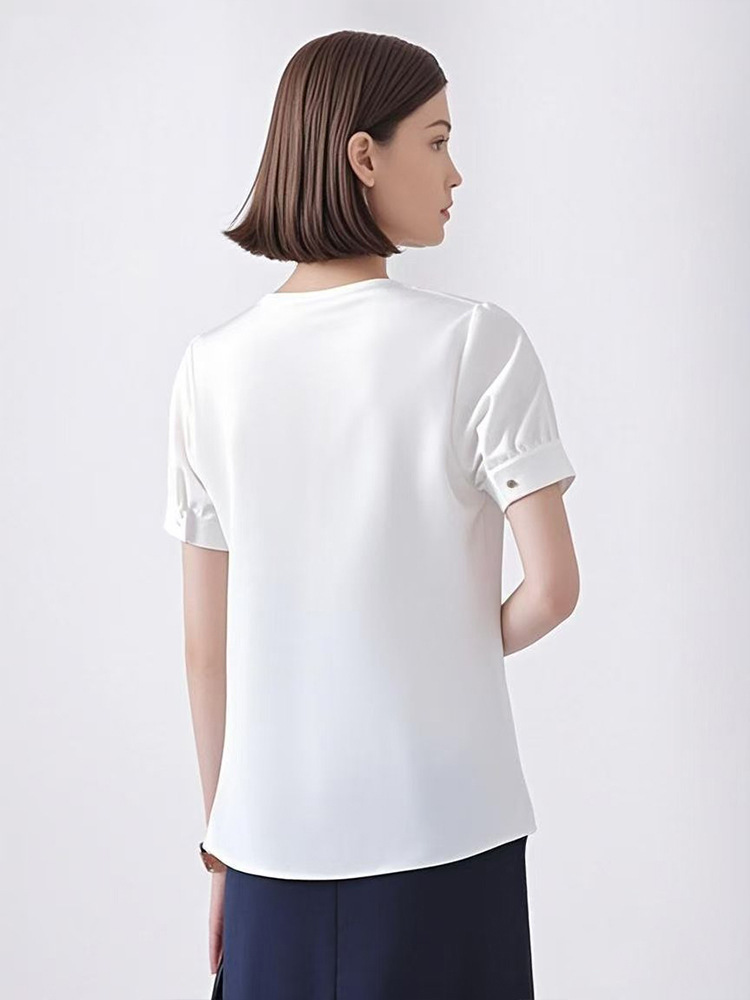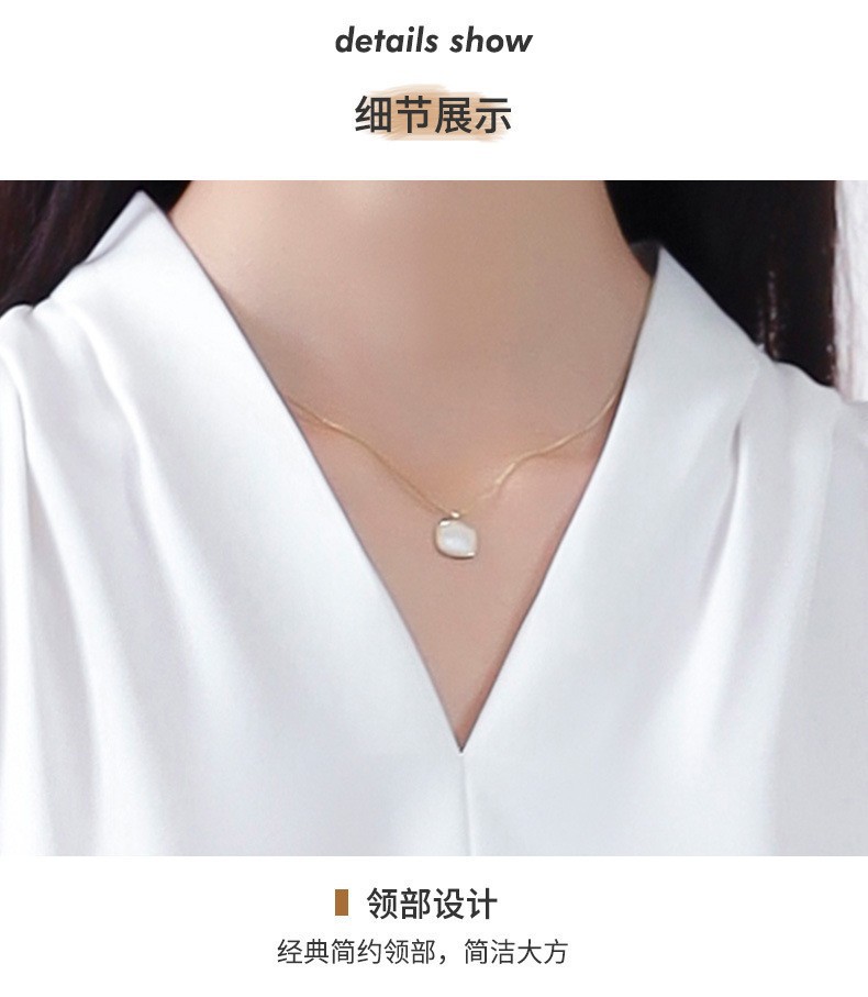 여름 여성용 화이트 쉬폰 브이넥 반팔 셔츠, 고급스럽고 전문적인 기질, 통근 드레이프, 패셔너블하고 활용도가 높은 탑