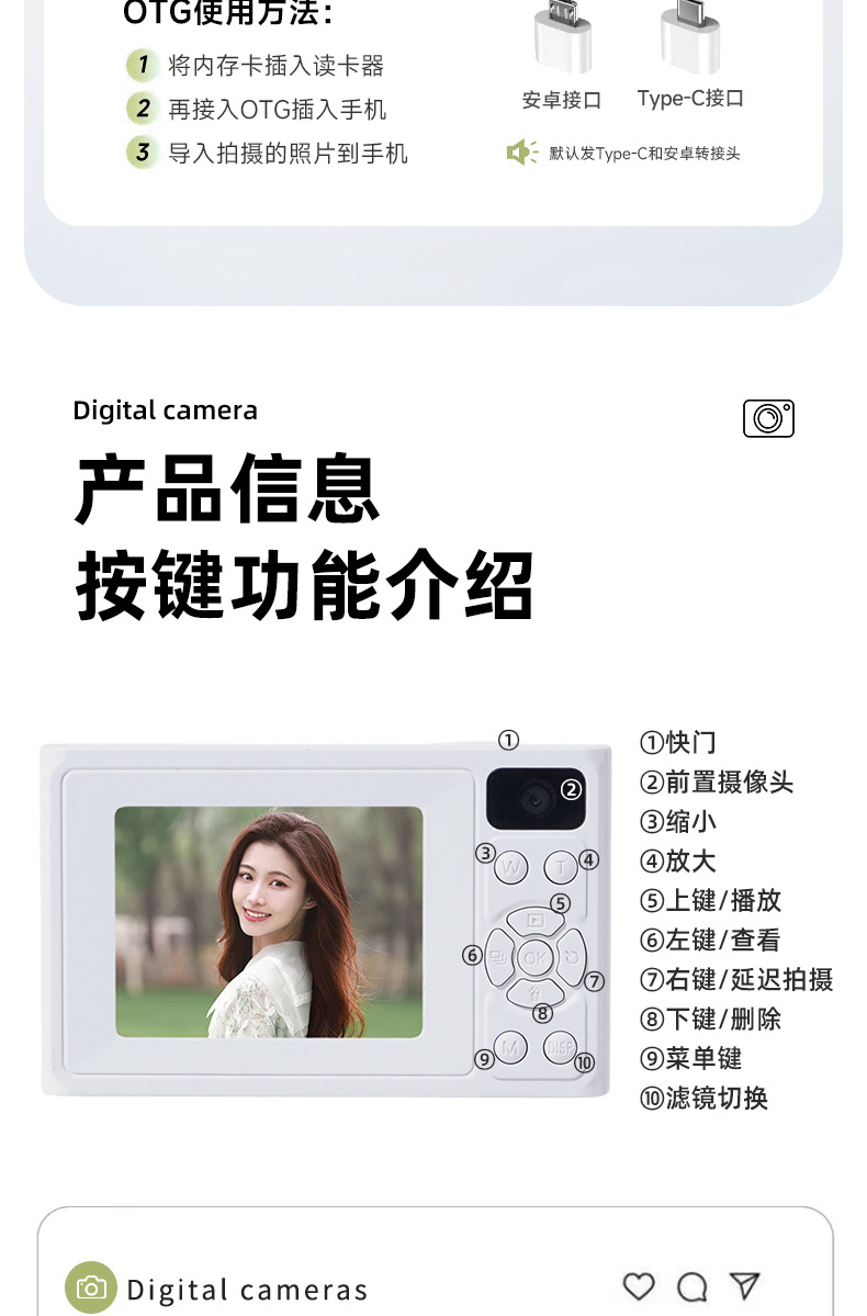 정품 전면 및 후면 고화질 듀얼 카메라 ccd 디지털 카메라 청소년 캠퍼스 학생 파티 선물 셀카 저렴한 카드 기계스토어 가기