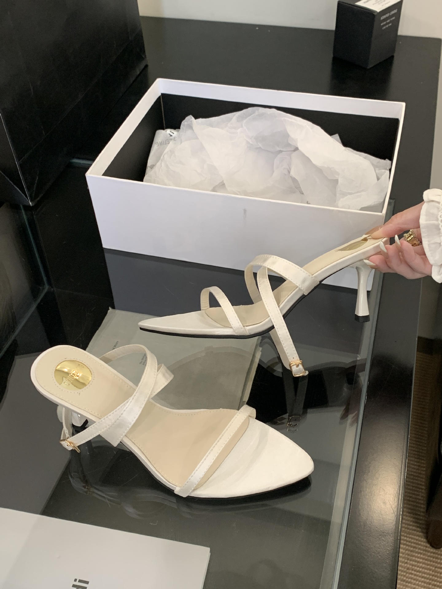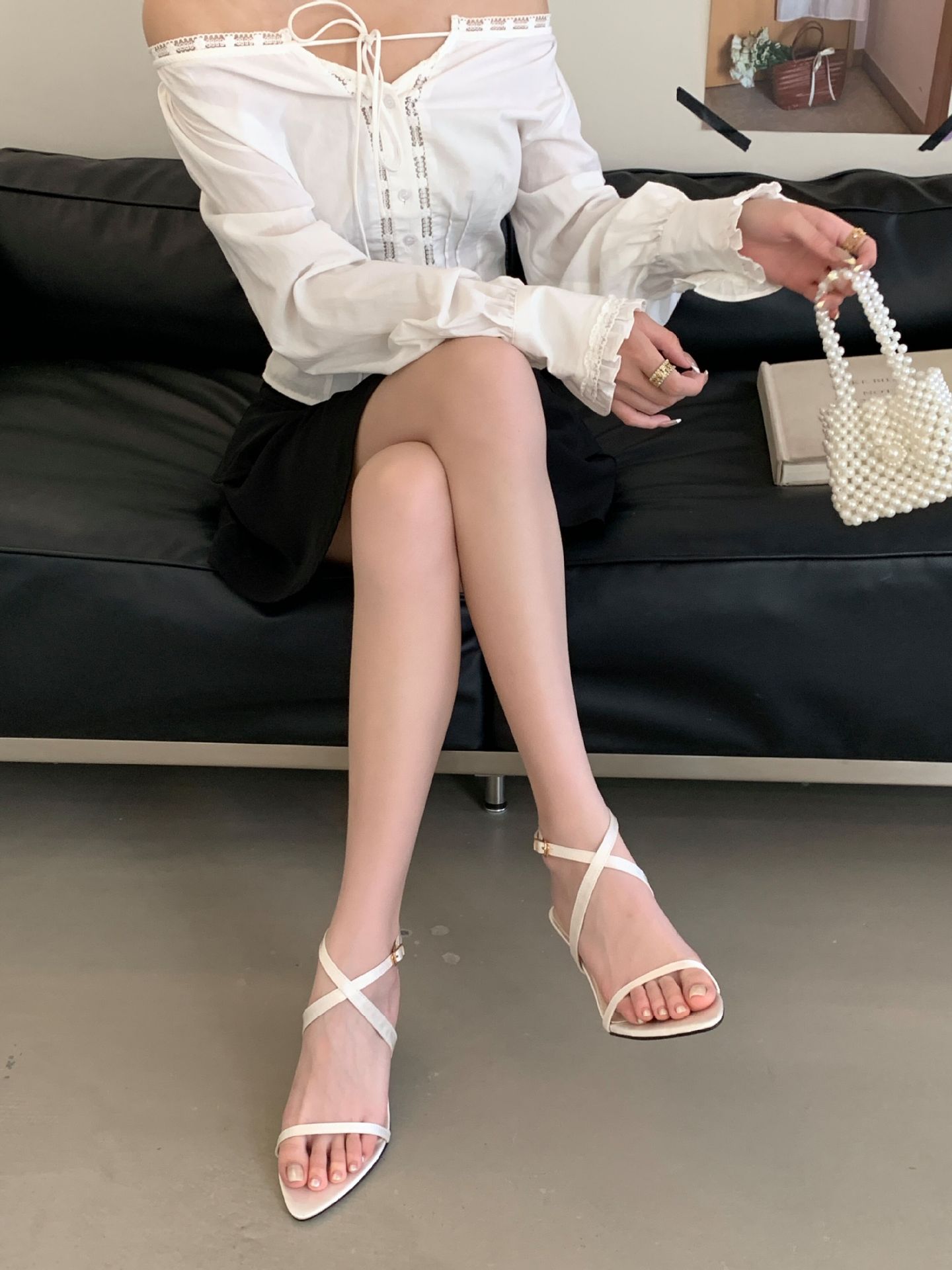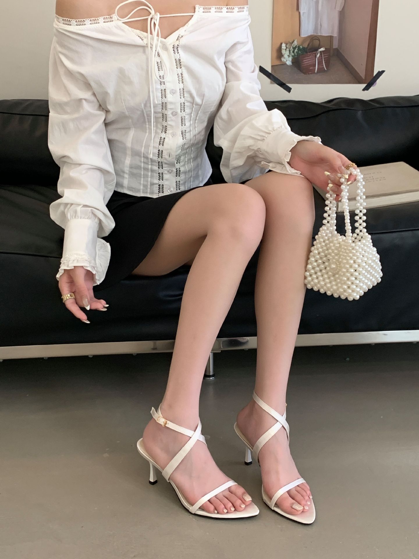 297-6~2025 여름 신상 심플 기질 포인티드 토 오픈 토 프렌치 하이힐 샌들 여성스토어 가기