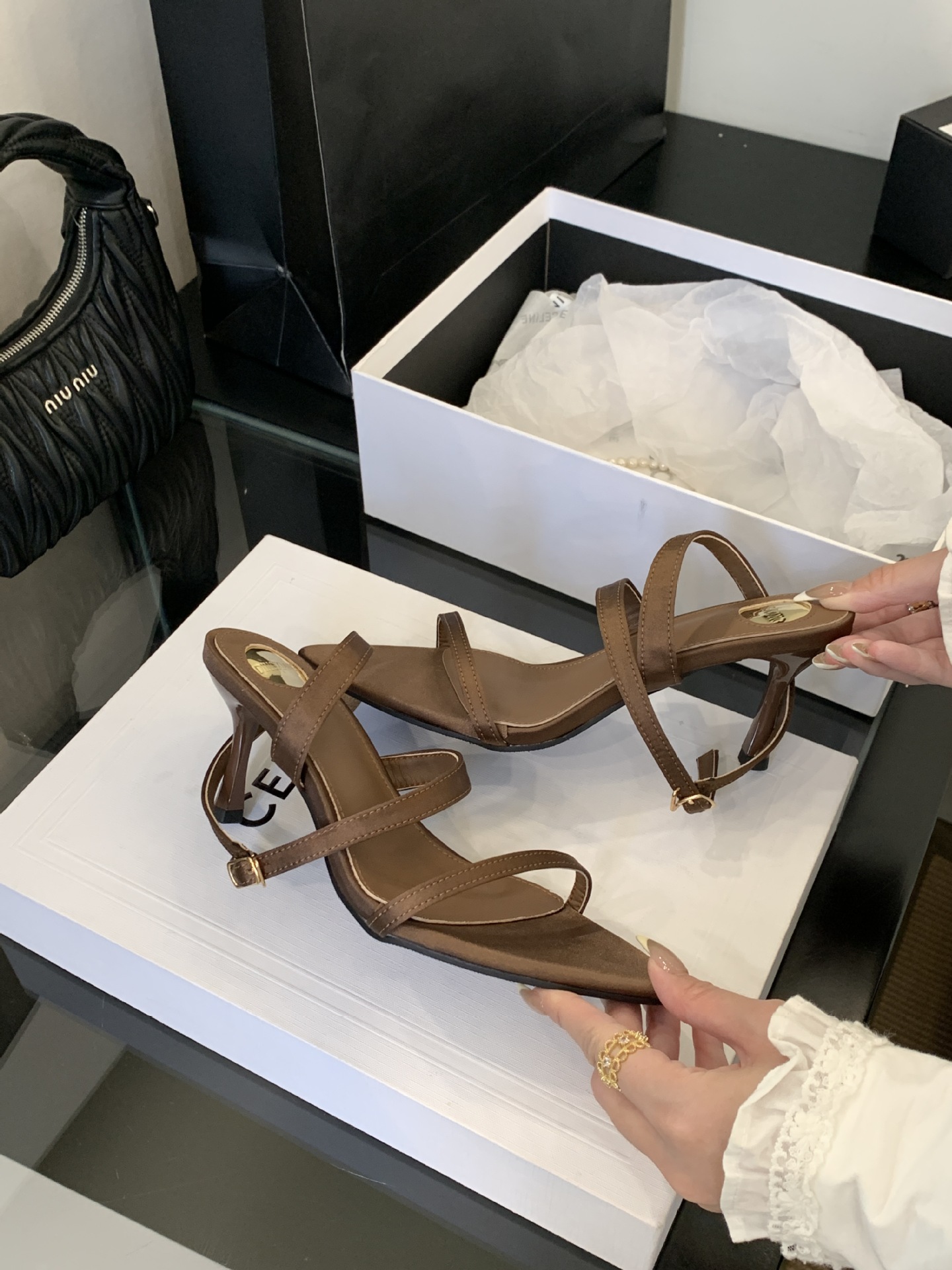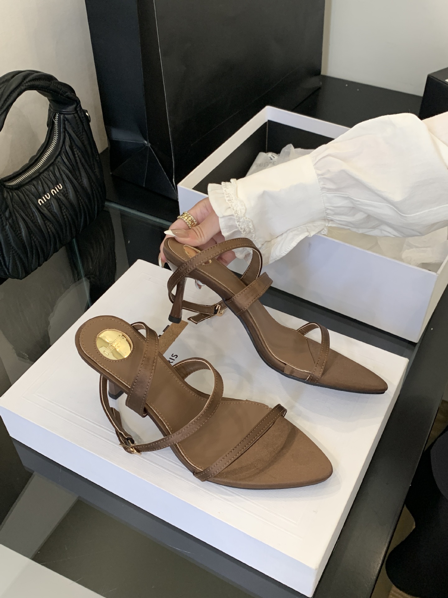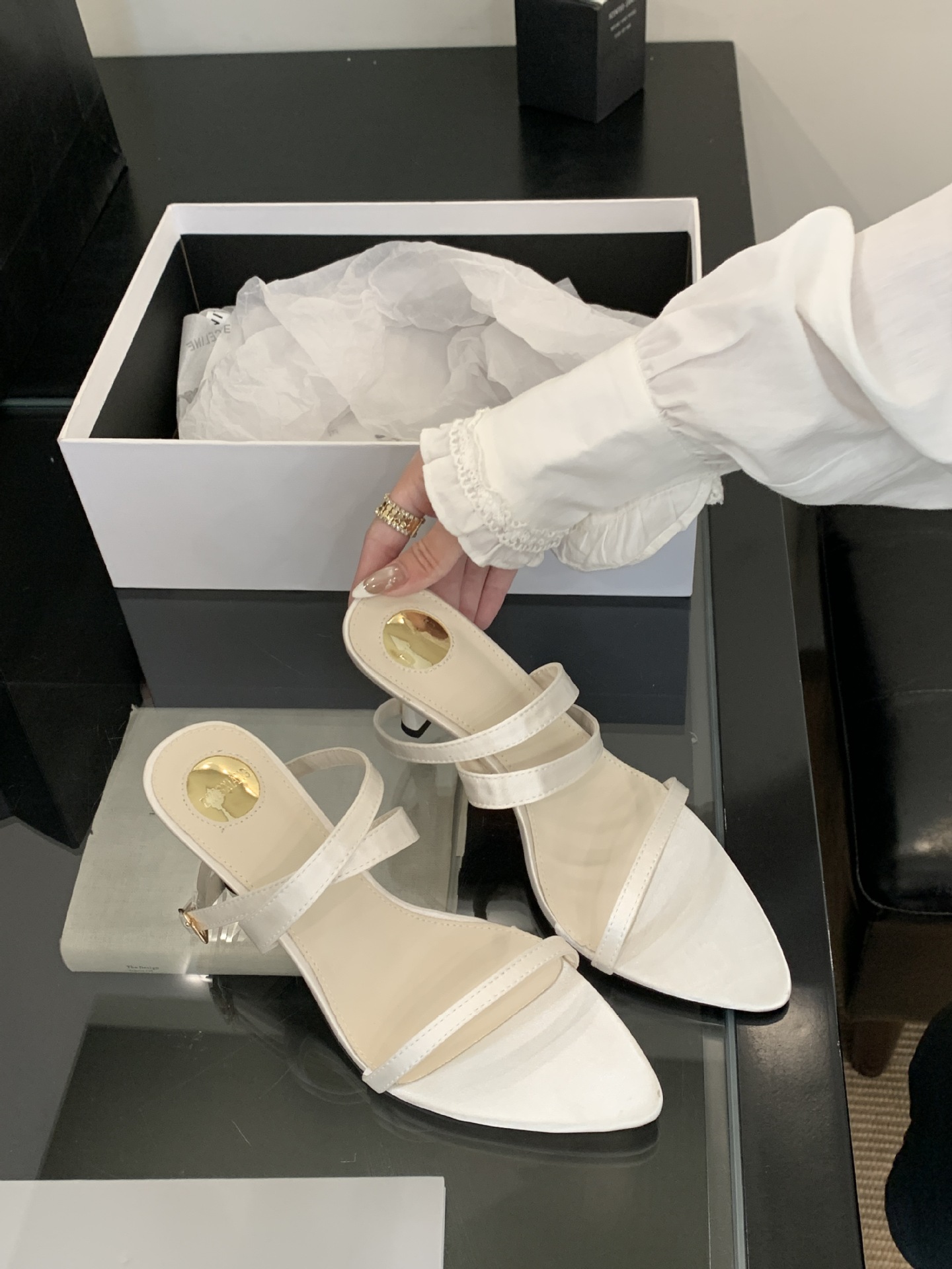 297-6~2025 여름 신상 심플 기질 포인티드 토 오픈 토 프렌치 하이힐 샌들 여성스토어 가기