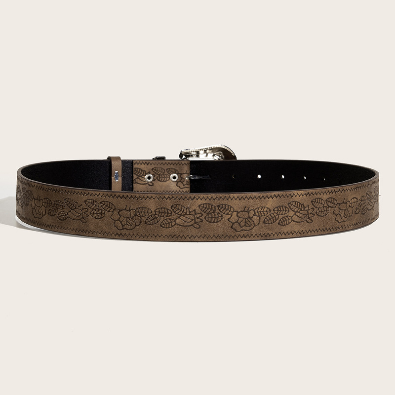 유럽과 미국 스타일의 문학적 복고풍 매력 틈새 핀 버클 갈색 질감 남여 벨트 인쇄 패턴 벨트스토어 가기
