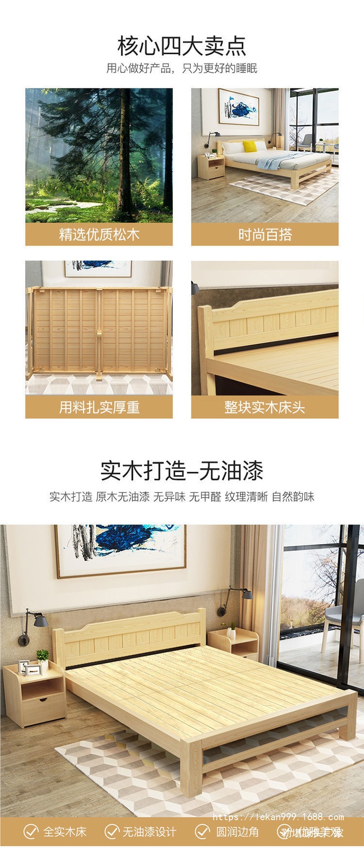 • 1.5m 와이드 원목 침대 + 두꺼운 매트리스