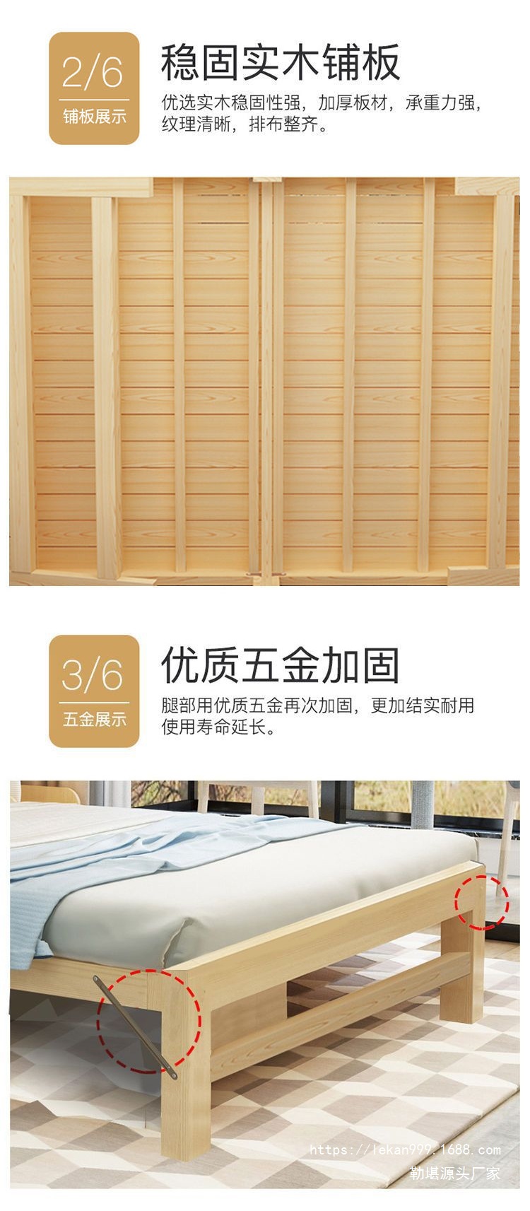 • 0.8m 넓은 수평 패널 확장 단단한 나무 침대